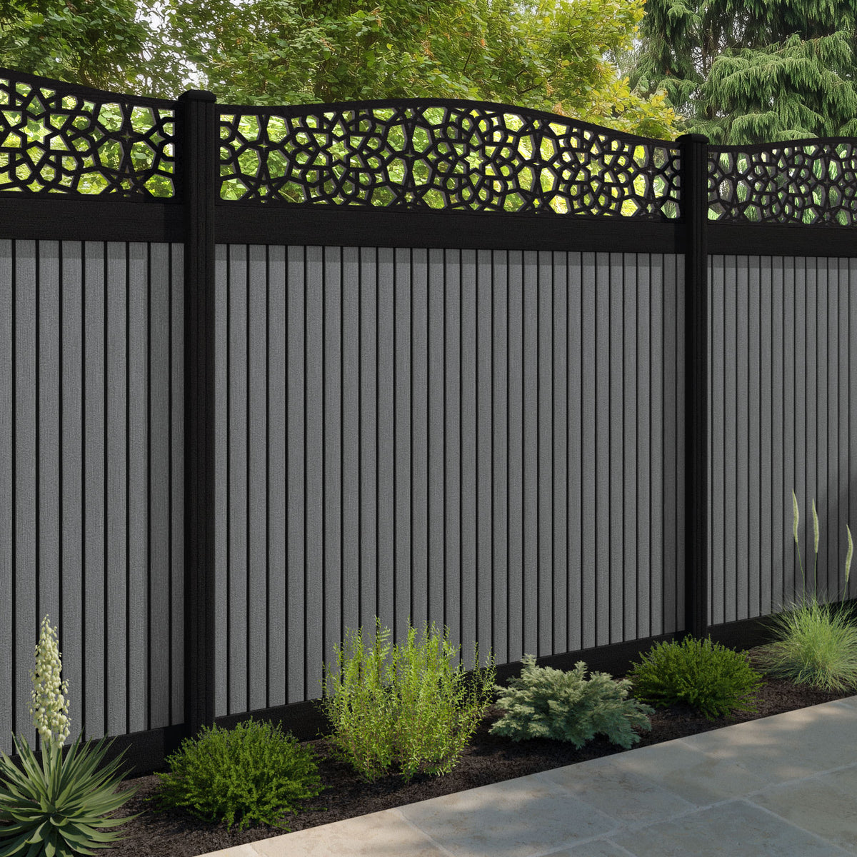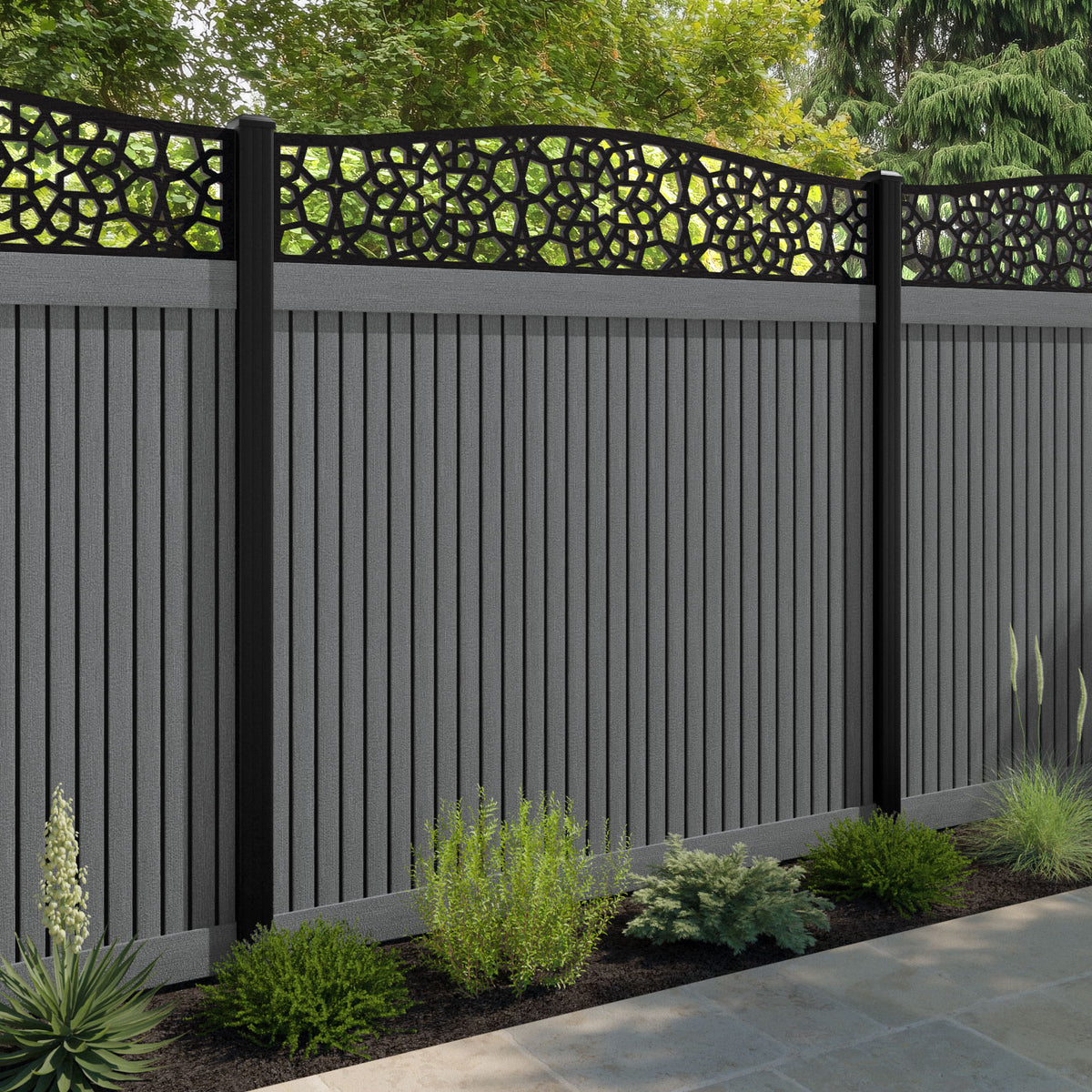 Virtis Nazira Curved Top Fence Panel Mid Grey - with our composite posts