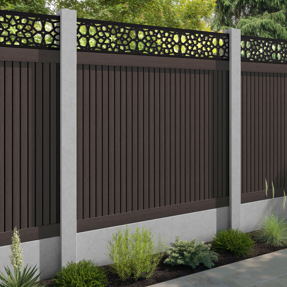 Virtis Nazira Fence Panel Mid Brown - for existing concrete posts