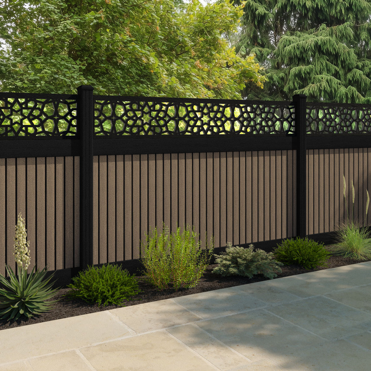 Virtis Nazira Fence Panel Teak - with our composite posts