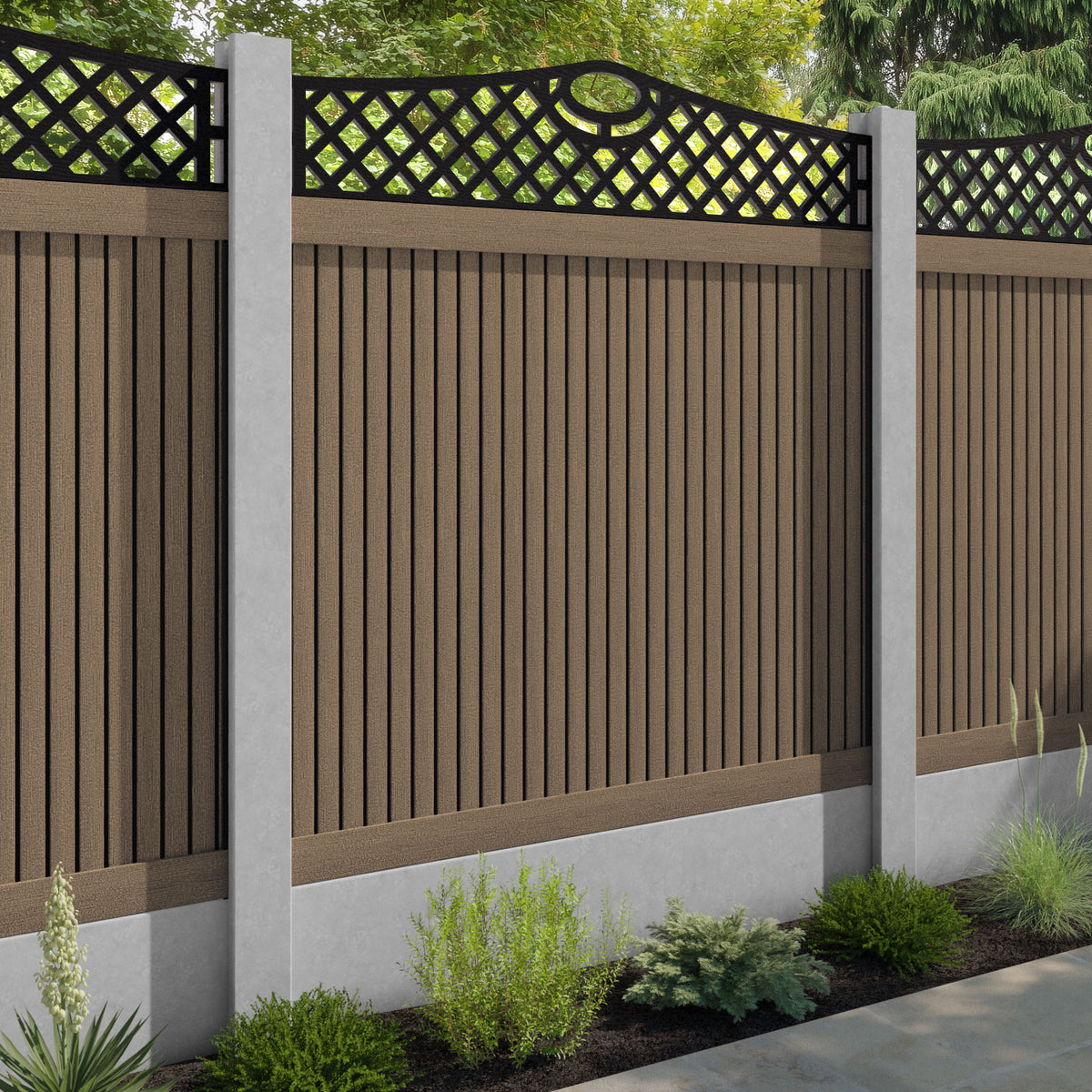 Virtis Oxford Curved Top Fence Panel Teak - for existing concrete posts