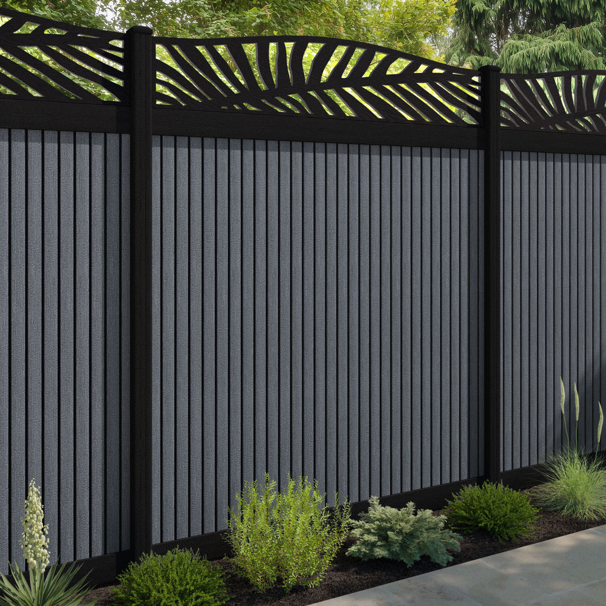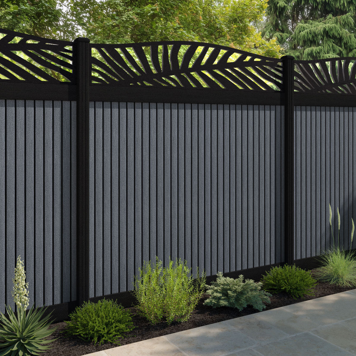 Virtis Palm Curved Top Fence Panel Anthracite - with our aluminium posts
