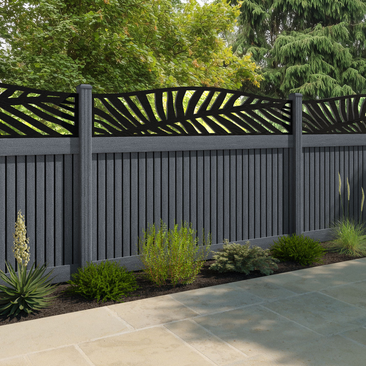 Virtis Palm Curved Top Fence Panel Anthracite - with our composite posts