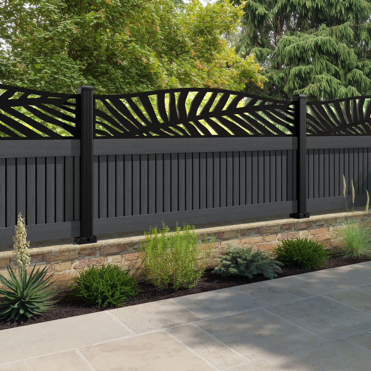 Virtis Palm Curved Top Fence Panel Dark Grey - with our aluminium posts