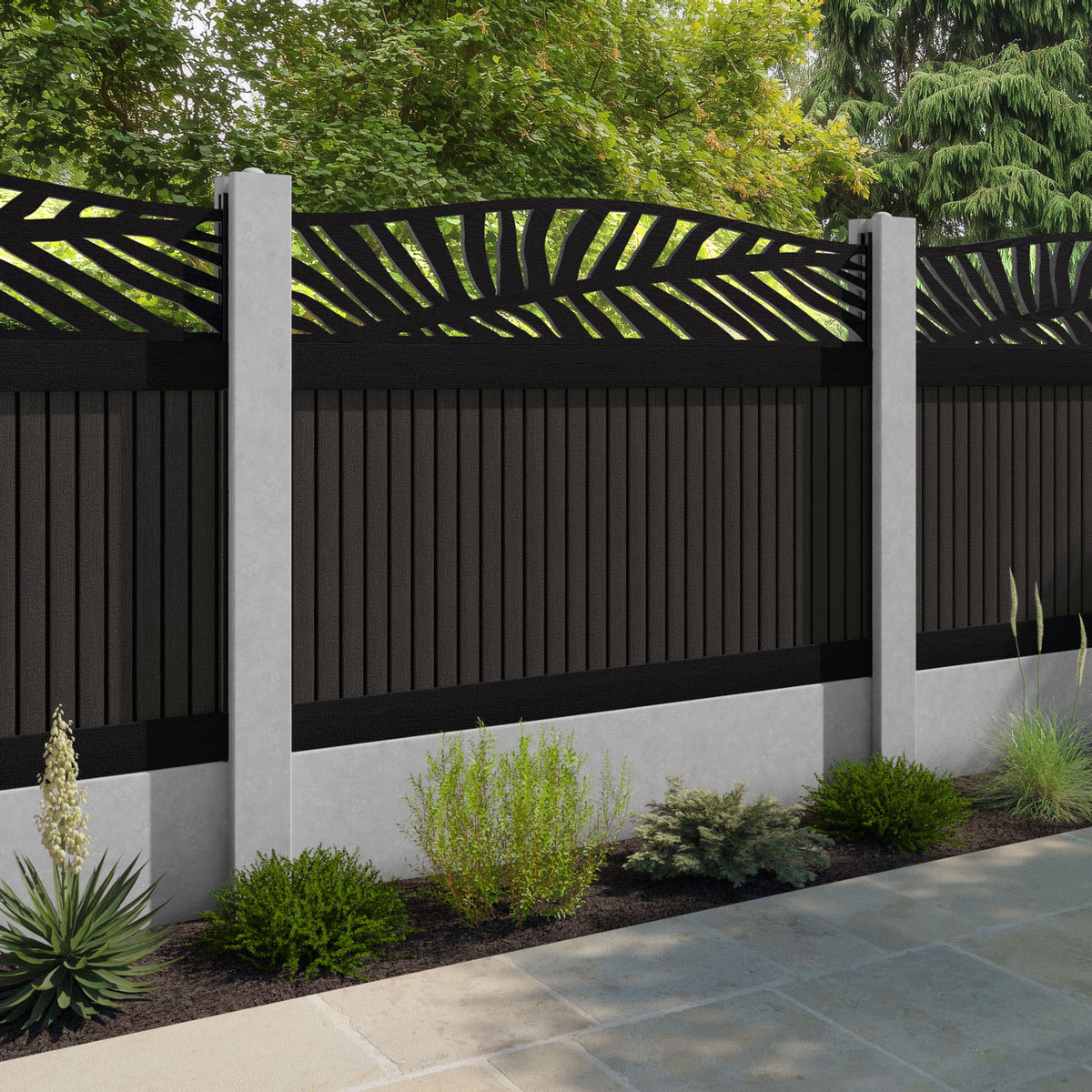 Virtis Palm Curved Top Fence Panel Dark Oak - for existing concrete posts