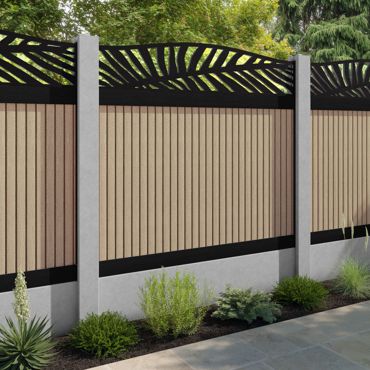 Virtis Palm Curved Top Fence Panel Light Oak - for existing concrete posts