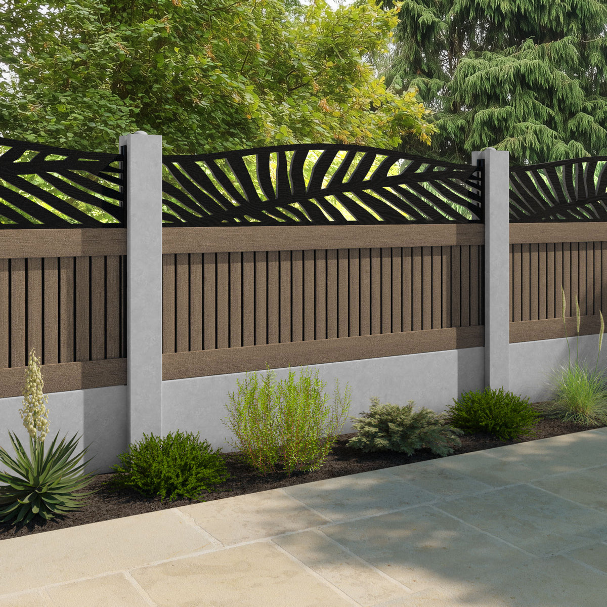 Virtis Palm Curved Top Fence Panel Teak - for existing concrete posts