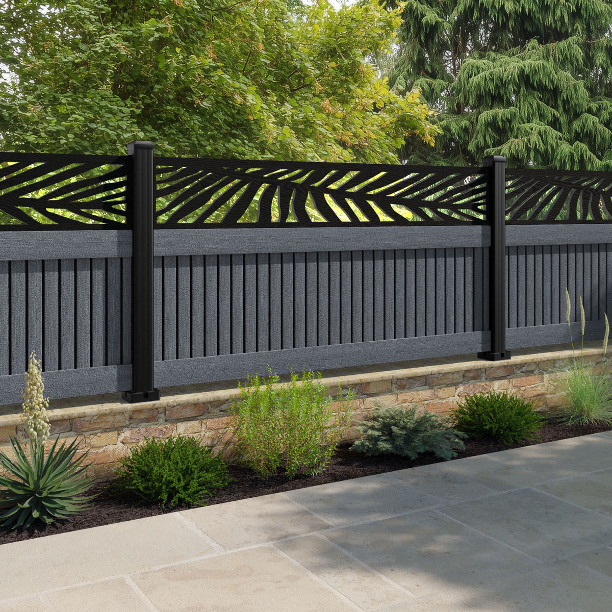 Virtis Palm Fence Panel Anthracite - with our composite posts