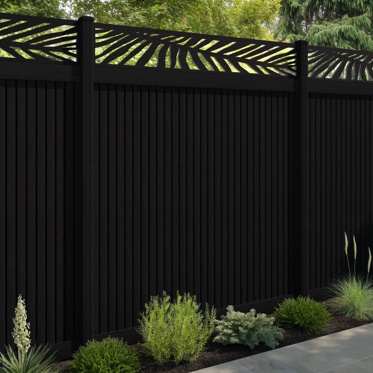 Virtis Palm Fence Panel Black - with our composite posts