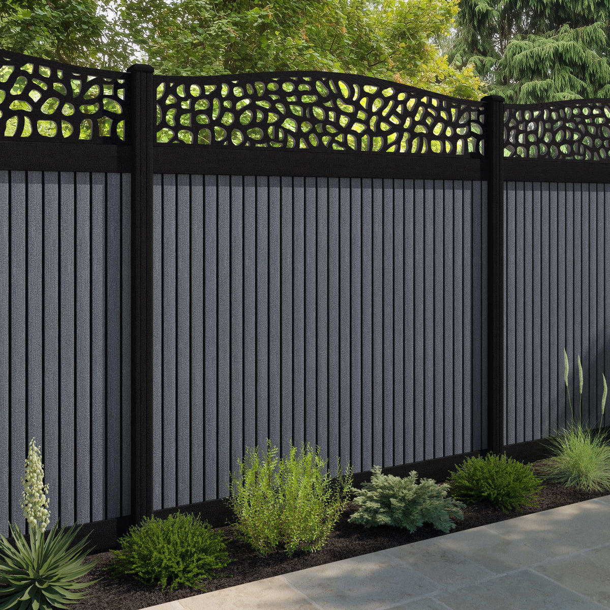 Virtis Pebble Curved Top Fence Panel Anthracite - with our aluminium posts