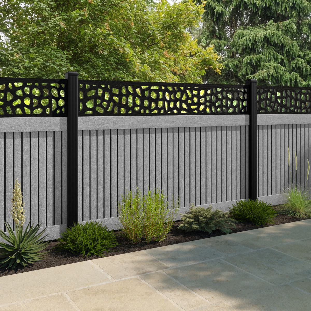 Virtis Pebble Fence Panel Light Grey - with our aluminium posts