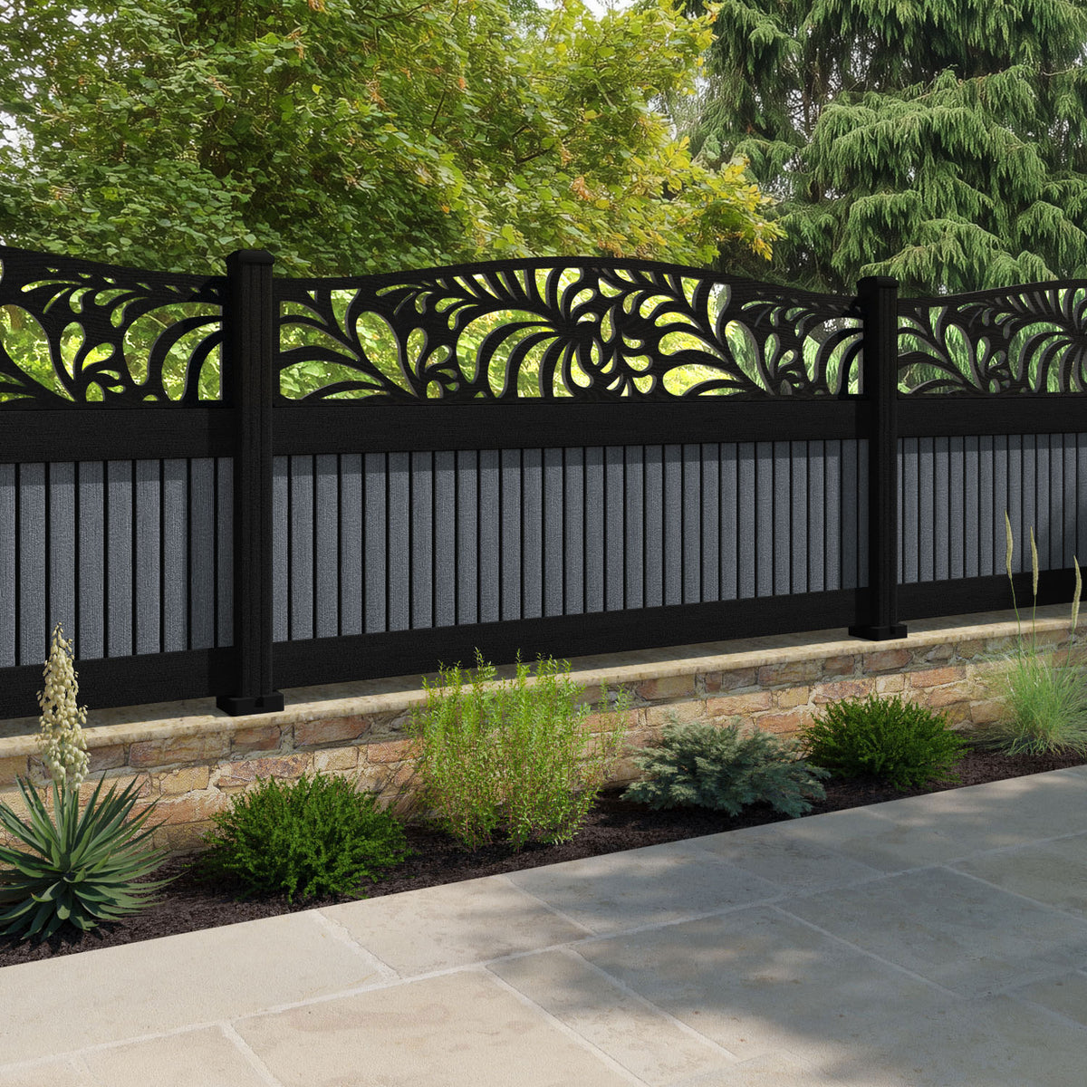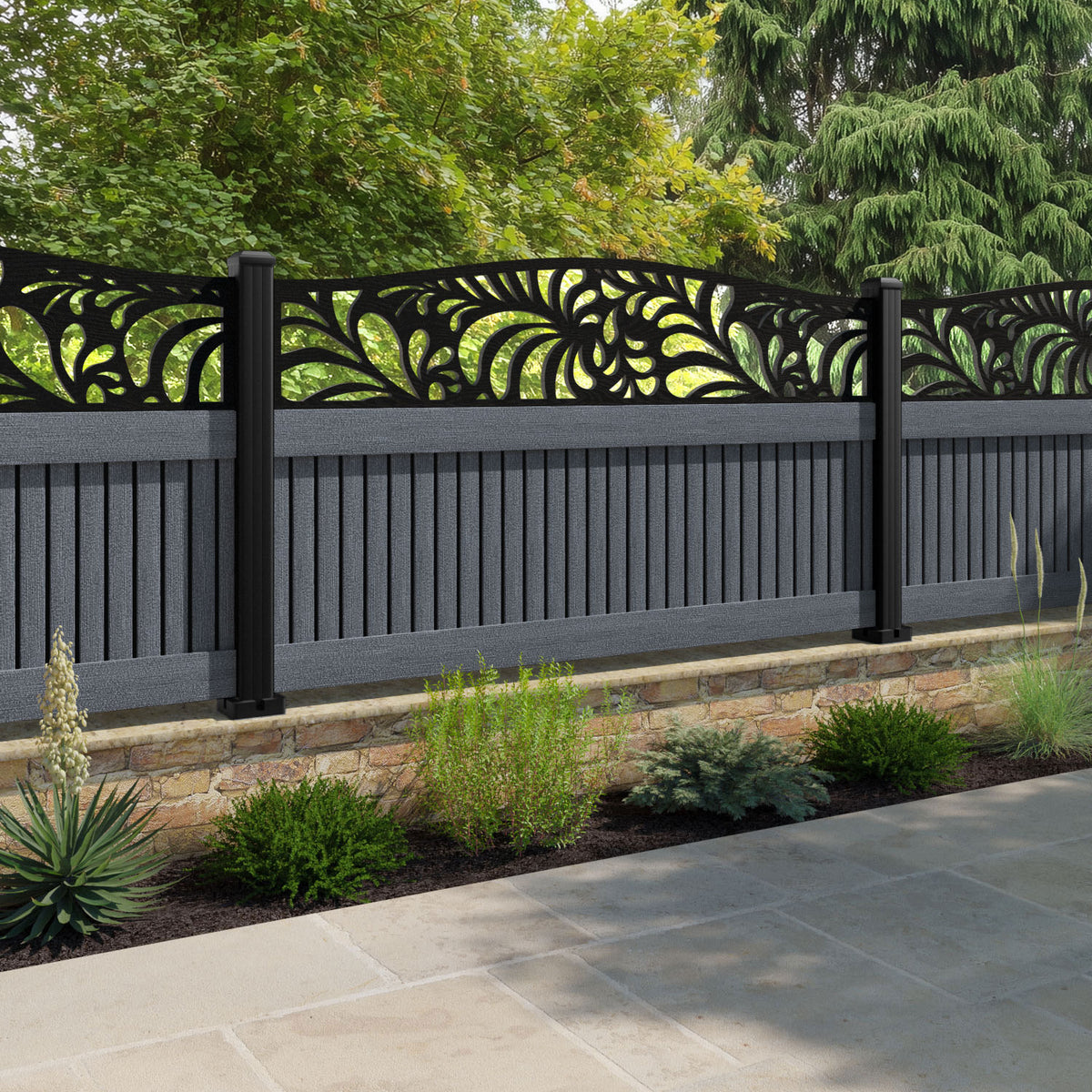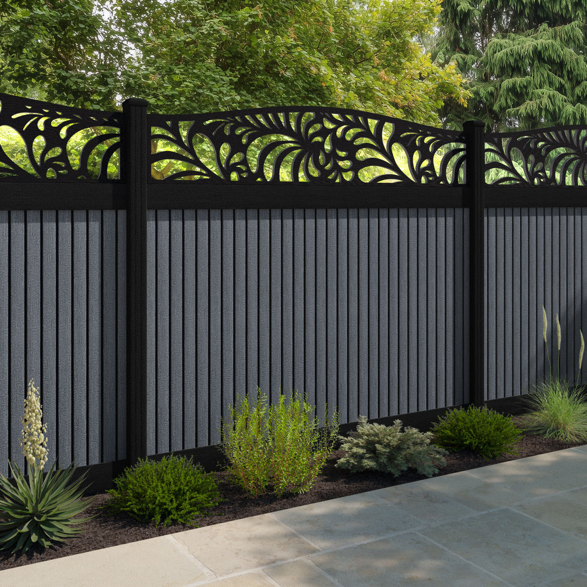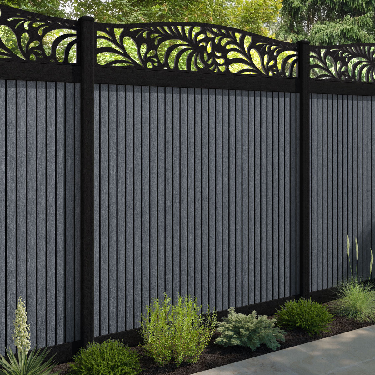 Virtis Petal Curved Top Fence Panel Anthracite - with our aluminium posts