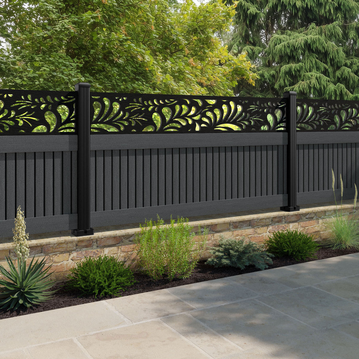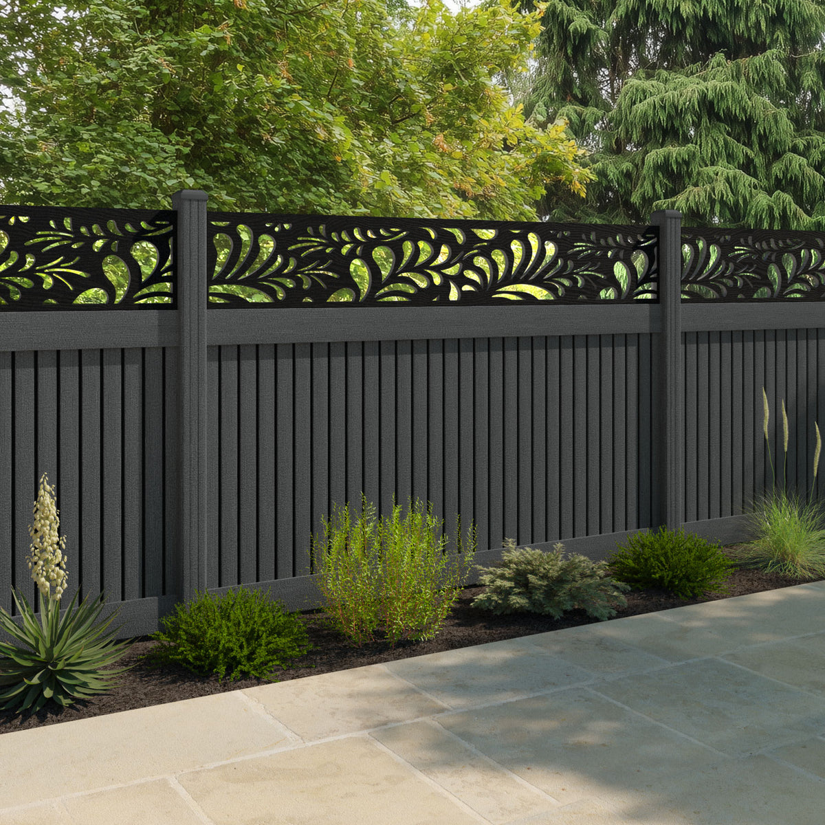 Virtis Petal Fence Panel Dark Grey - with our composite posts