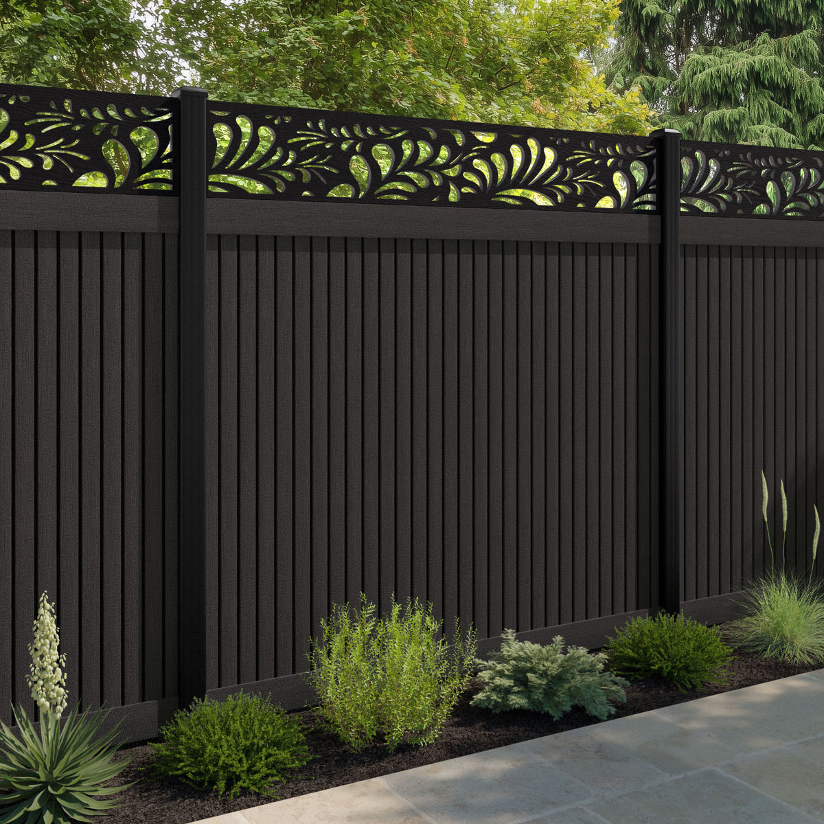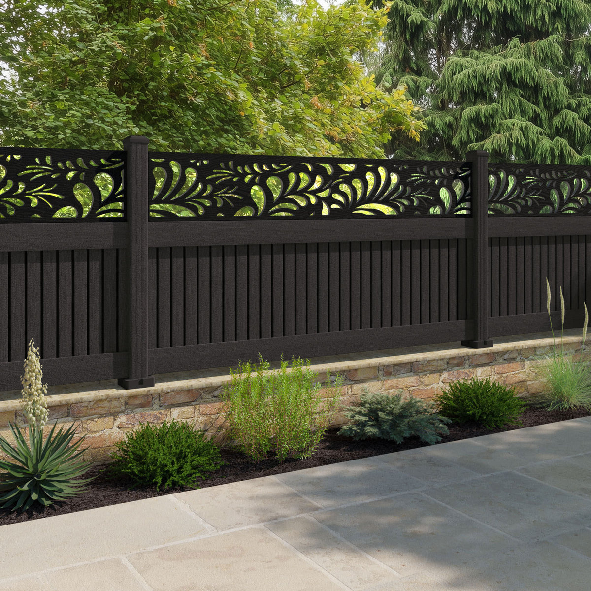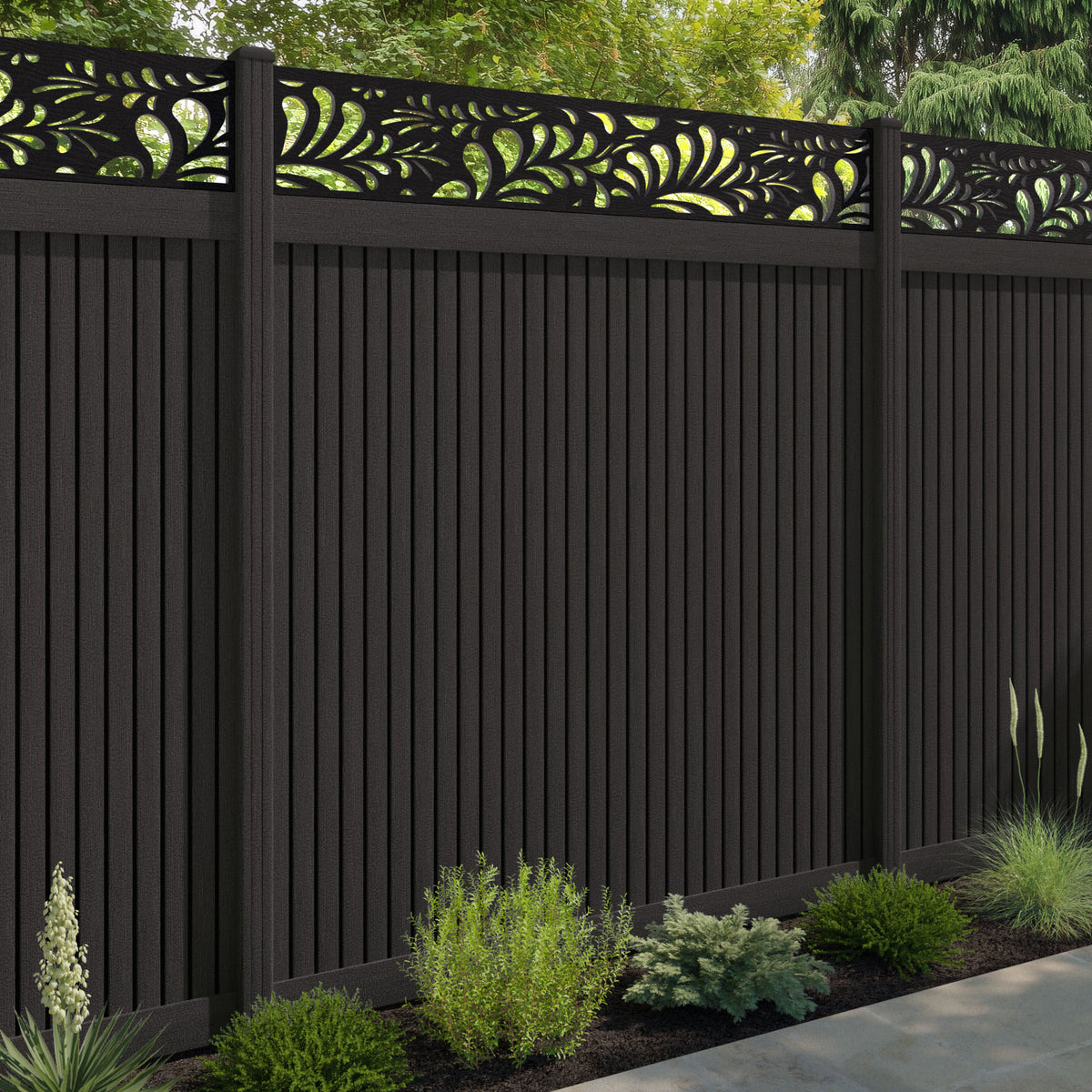 Virtis Petal Fence Panel Dark Oak - with our composite posts