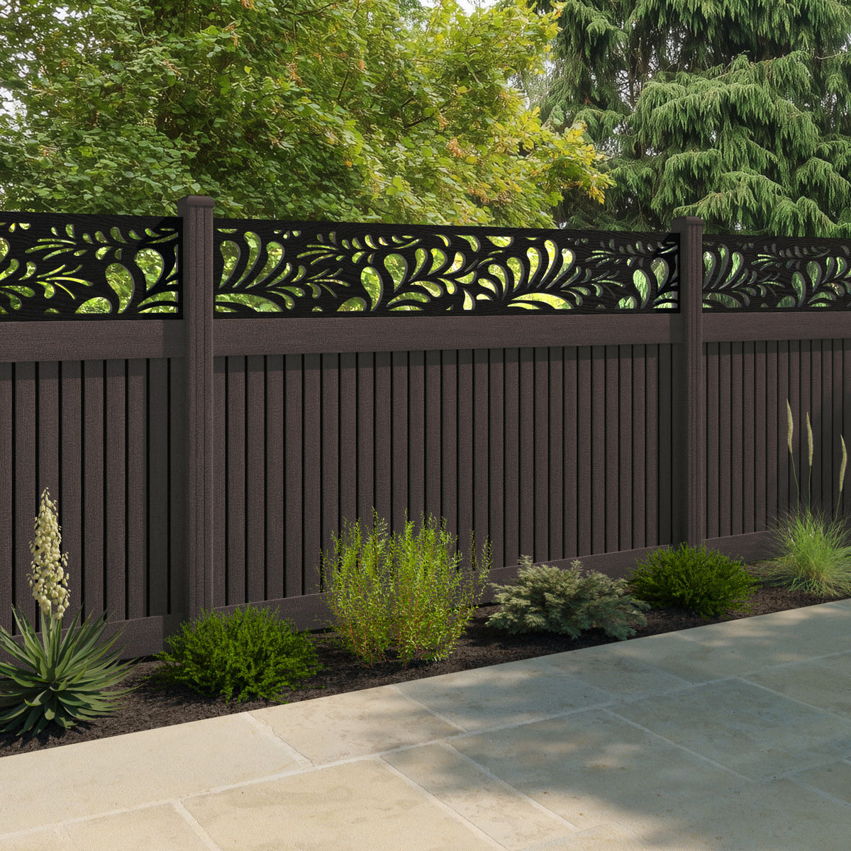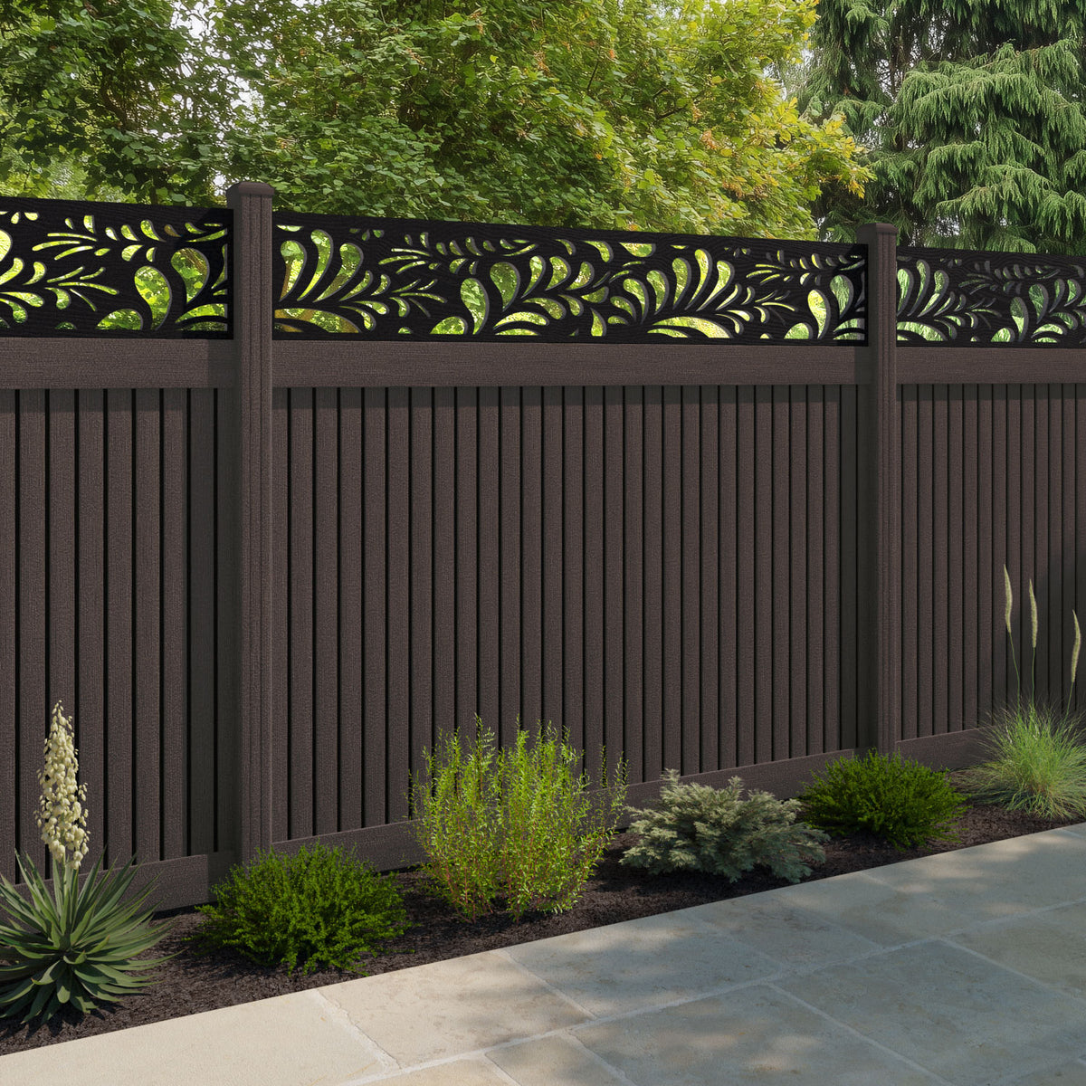Virtis Petal Fence Panel Mid Brown - with our composite posts