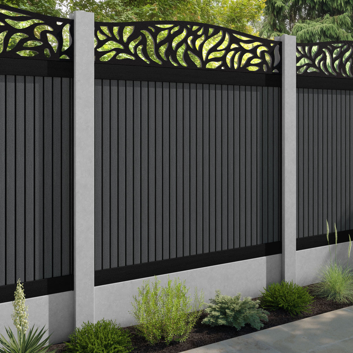Virtis Plume Curved Top Fence Panel Dark Grey - for existing concrete posts
