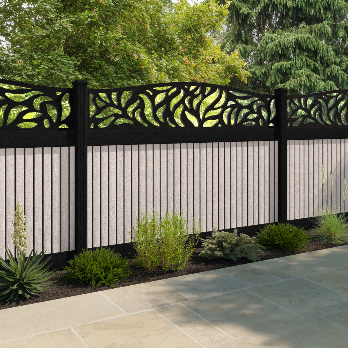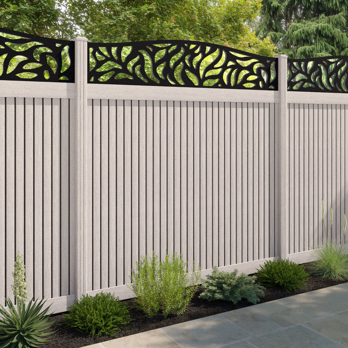 Virtis Plume Curved Top Fence Panel Mid Stone - with our composite posts