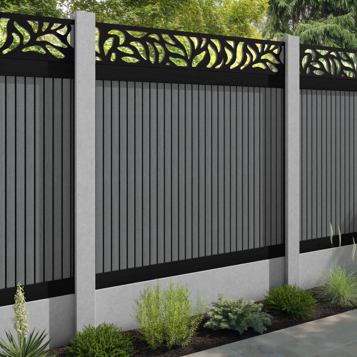 Virtis Plume Fence Panel Mid Grey - for existing concrete posts