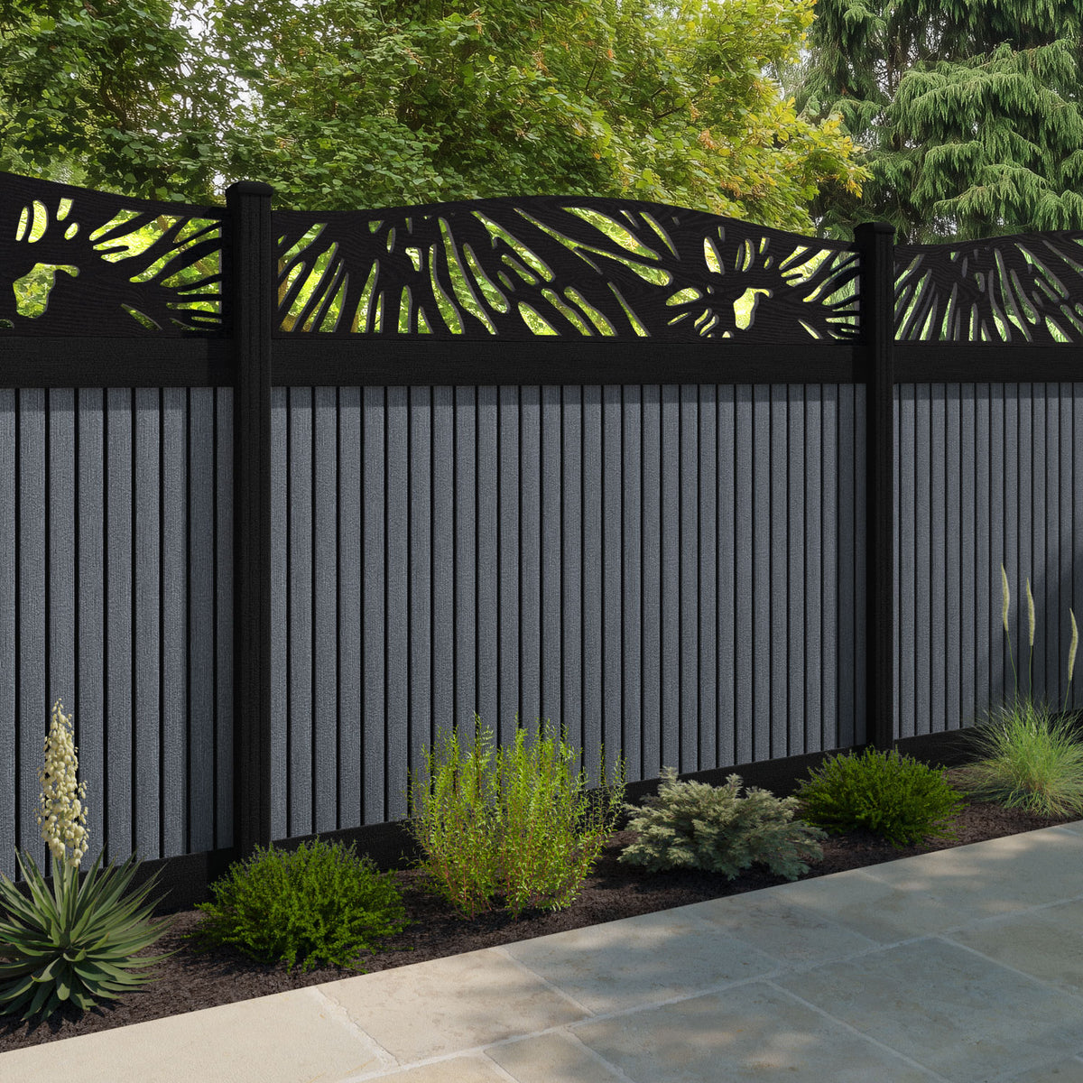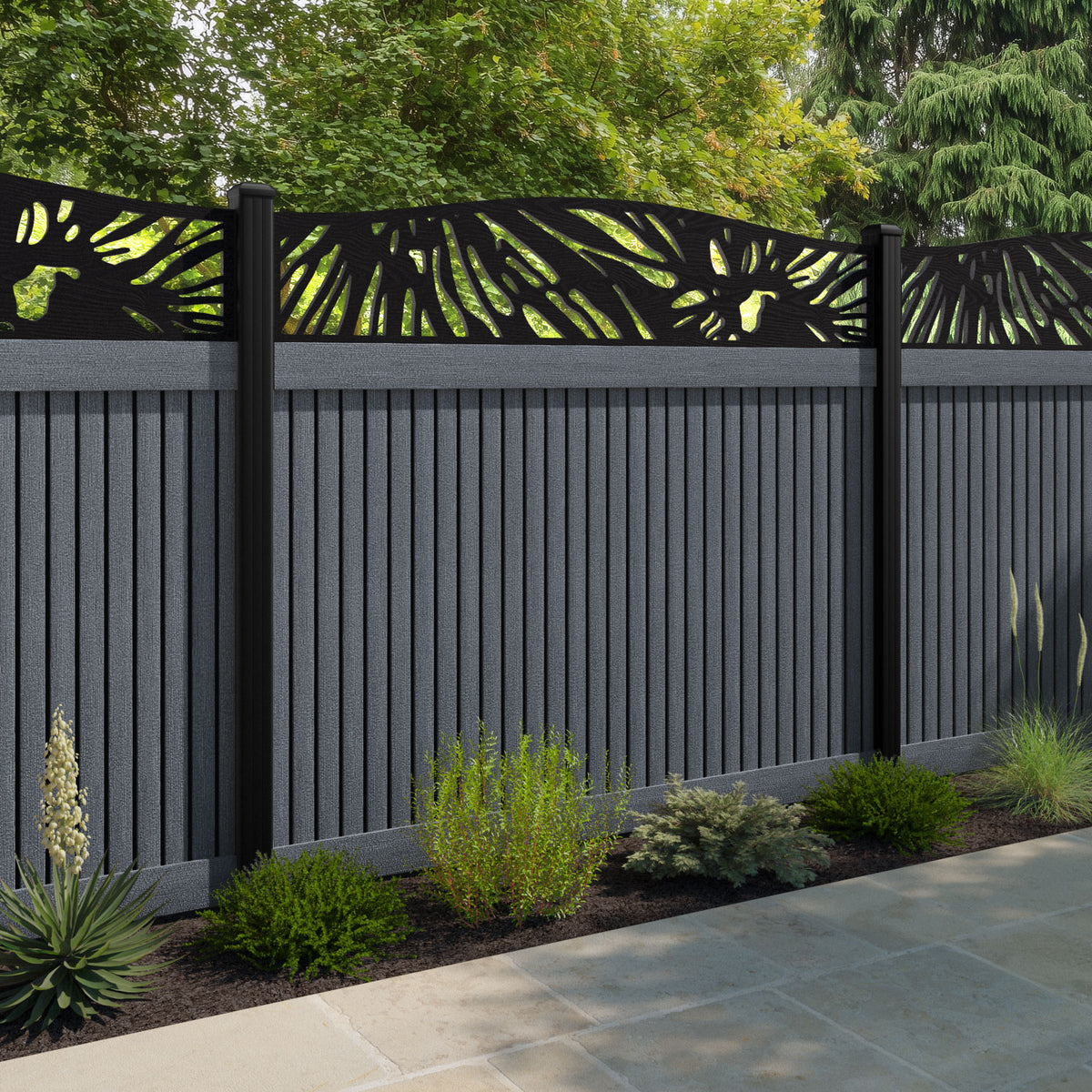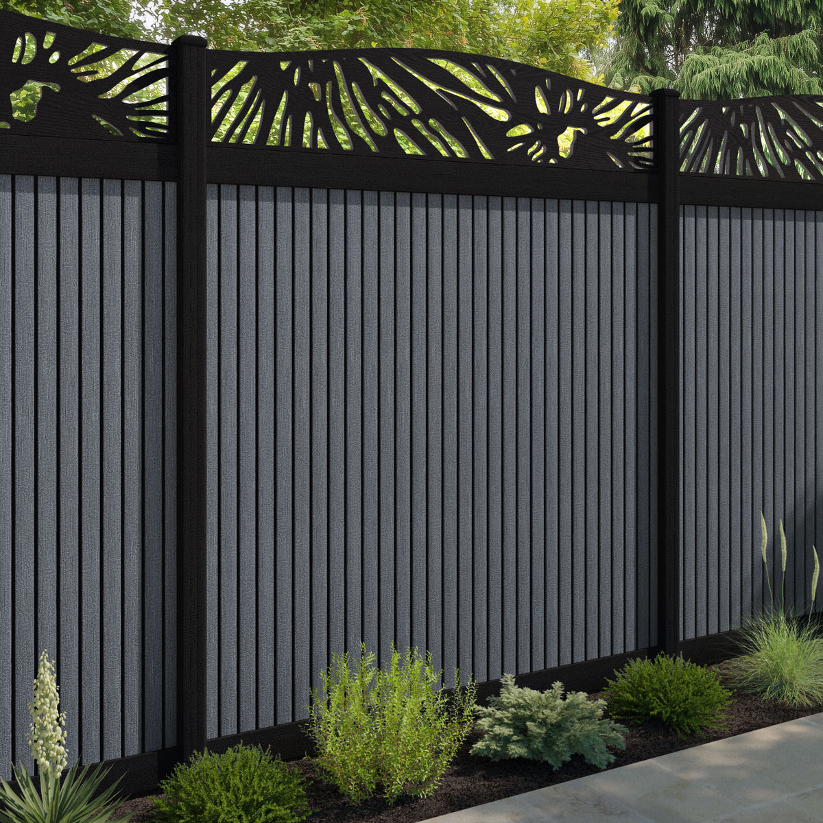 Virtis Poppy Curved Top Fence Panel Anthracite - with our aluminium posts