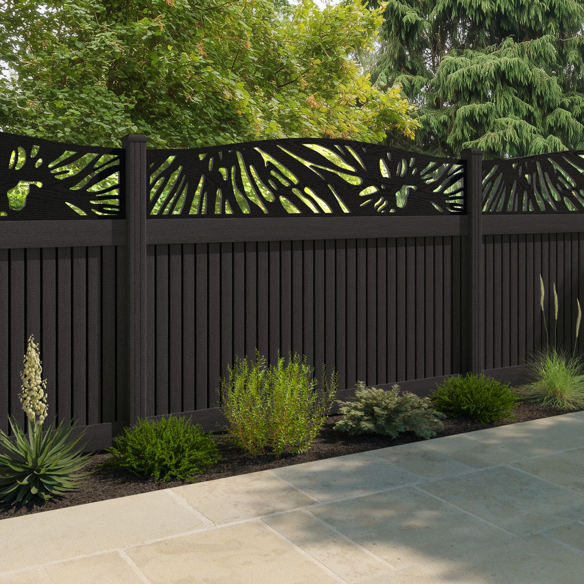 Virtis Poppy Curved Top Fence Panel Dark Oak - with our composite posts