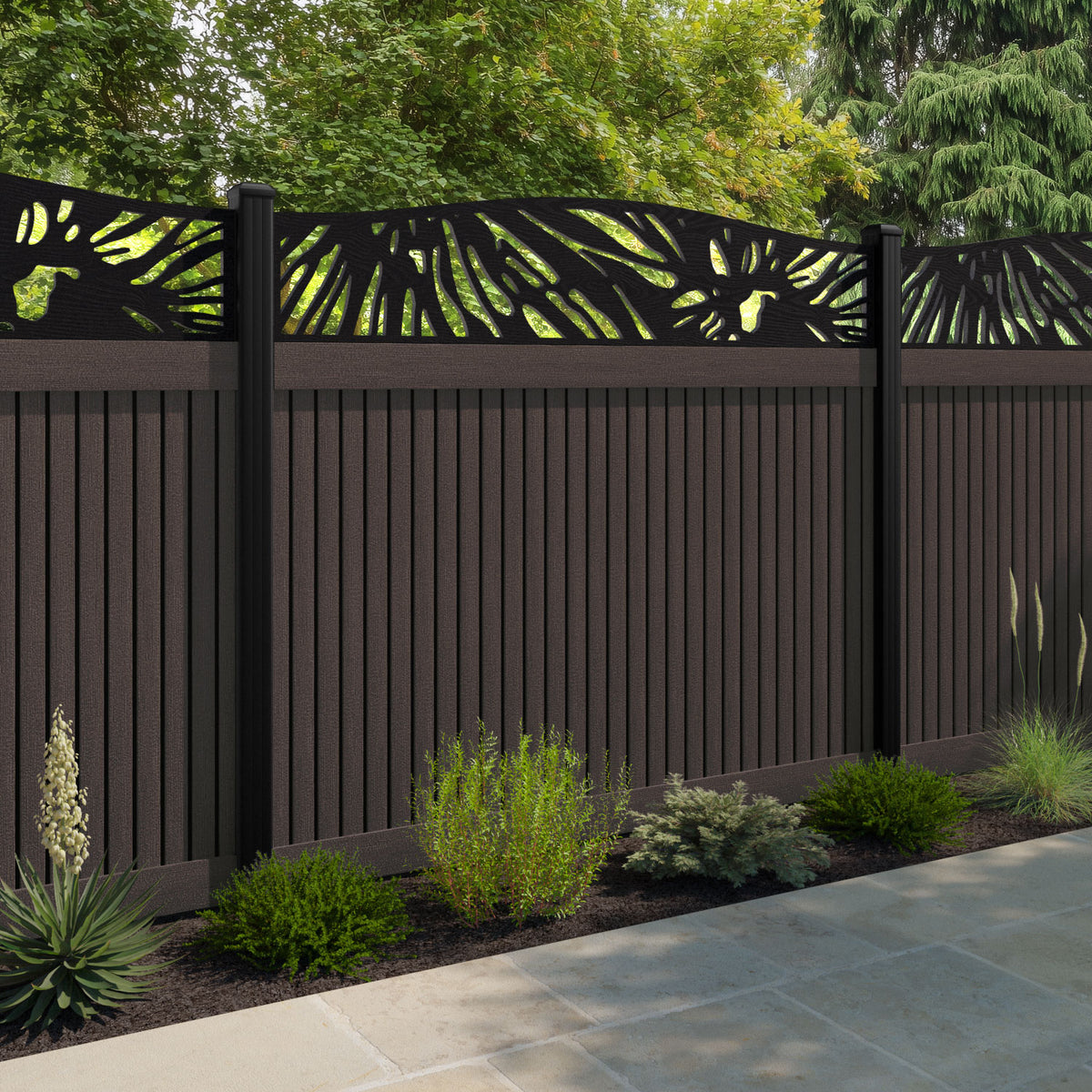 Virtis Poppy Curved Top Fence Panel Mid Brown - with our aluminium posts