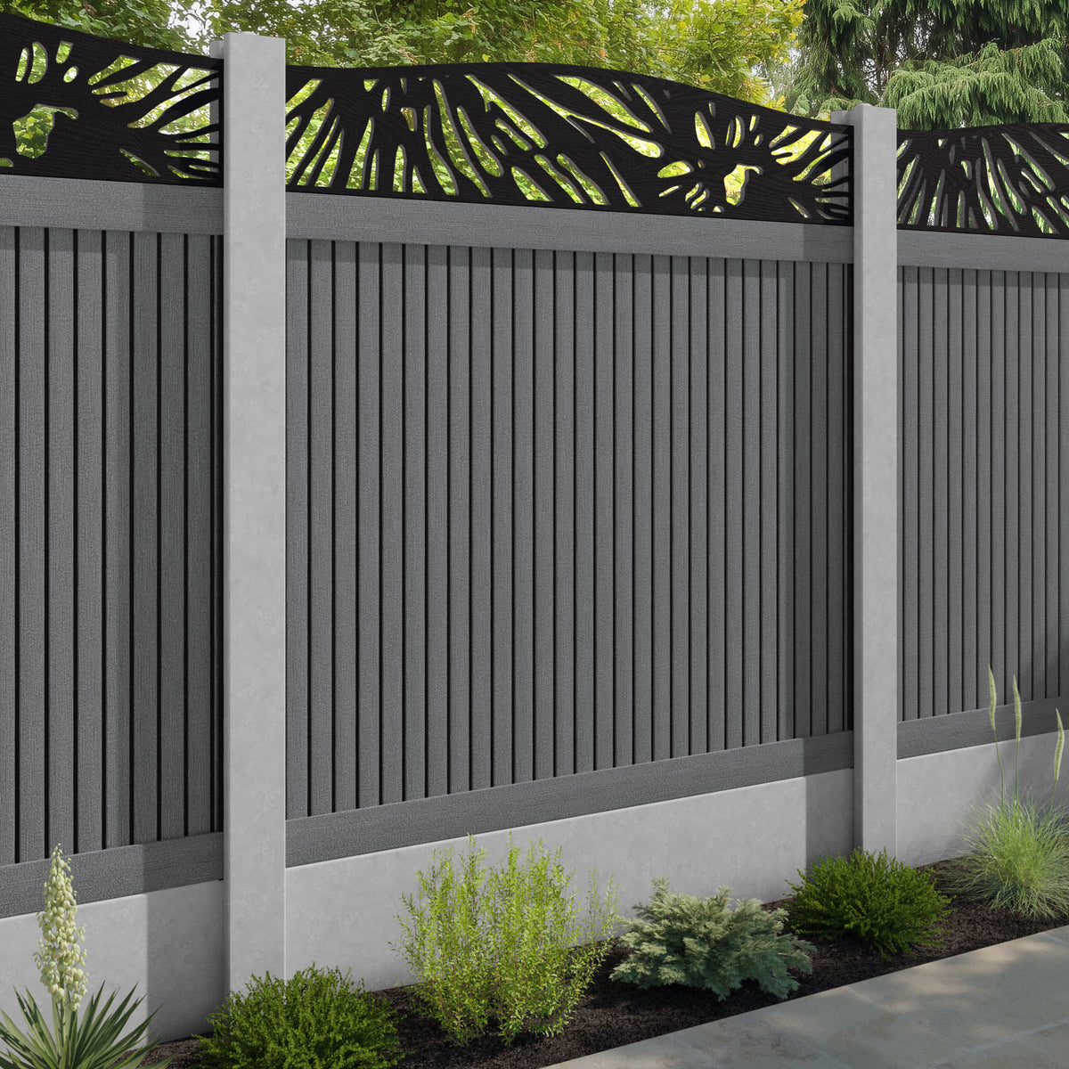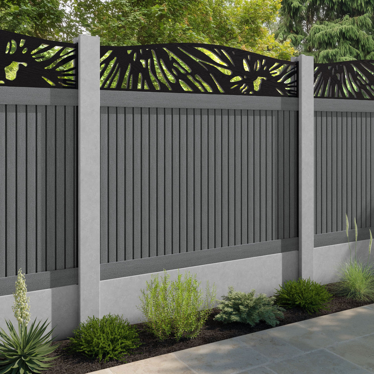 Virtis Poppy Curved Top Fence Panel Mid Grey - for existing concrete posts