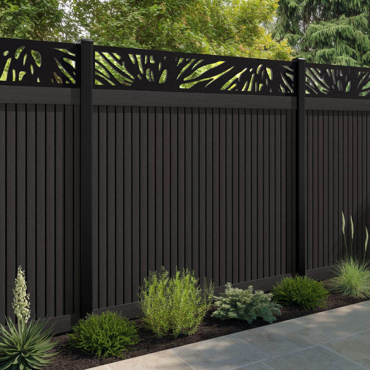 Virtis Poppy Fence Panel Dark Oak - with our aluminium posts