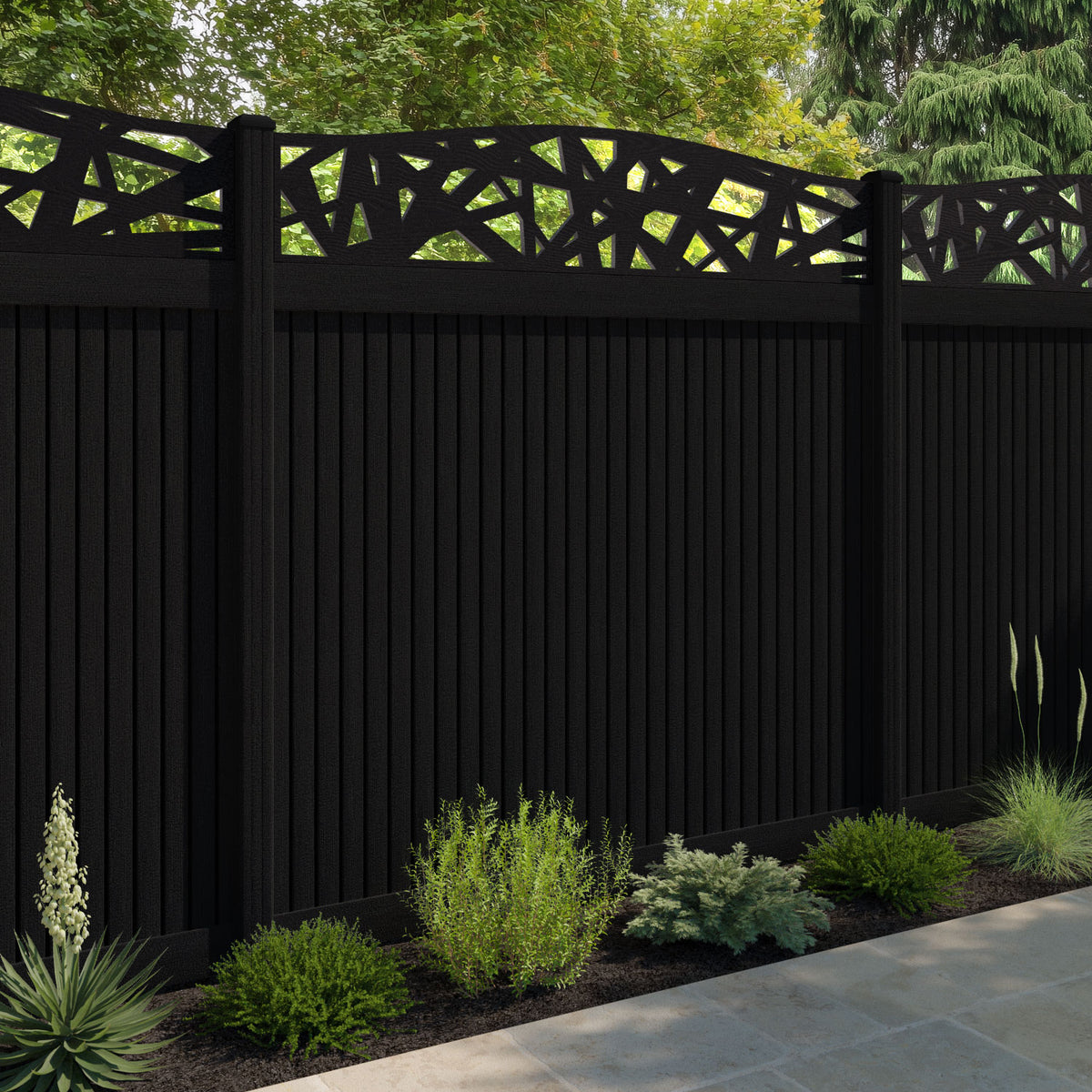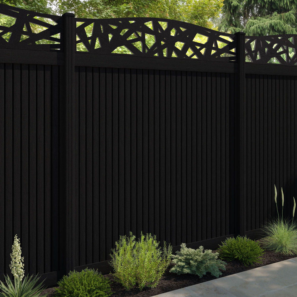 Virtis Prism Curved Top Fence Panel Black - with our composite posts
