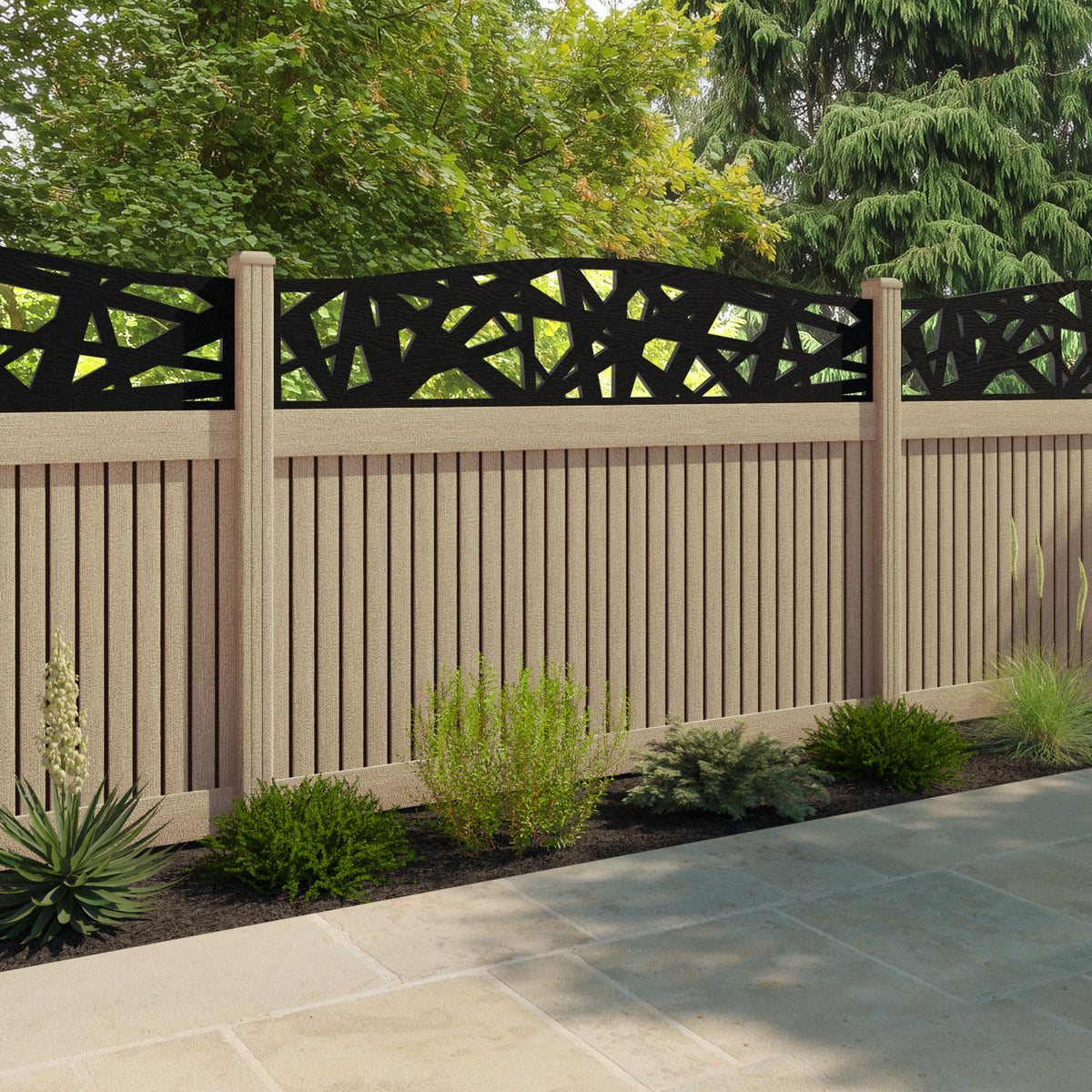 Virtis Prism Curved Top Fence Panel Light Oak - with our composite posts