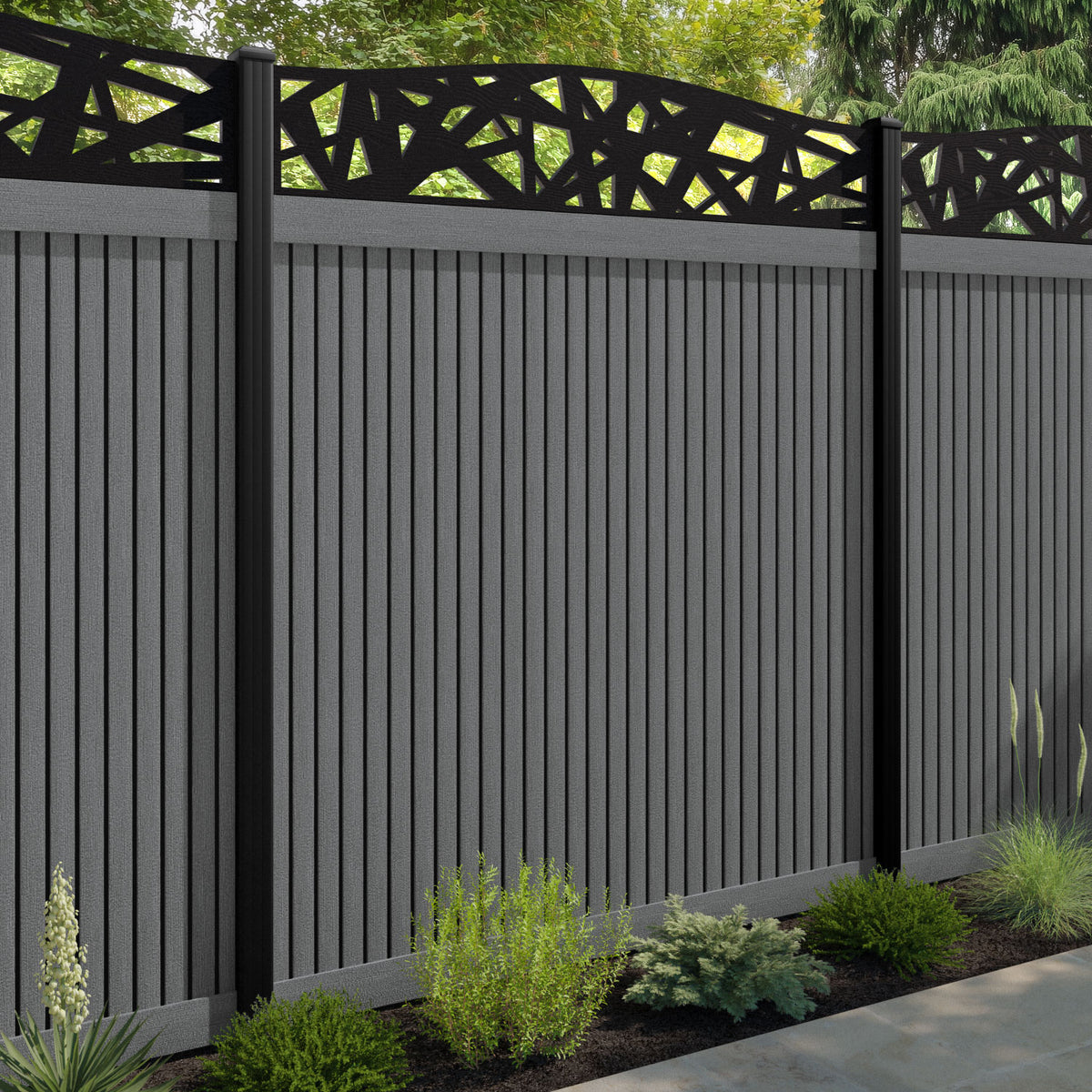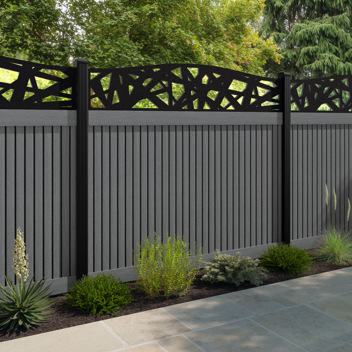 Virtis Prism Curved Top Fence Panel Mid Grey - with our aluminium posts