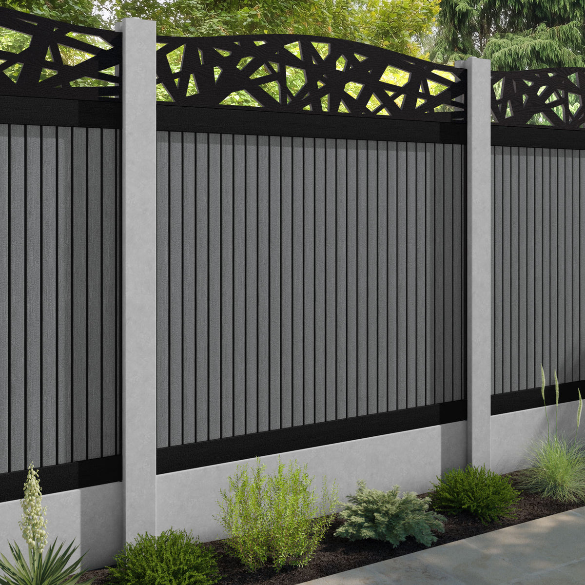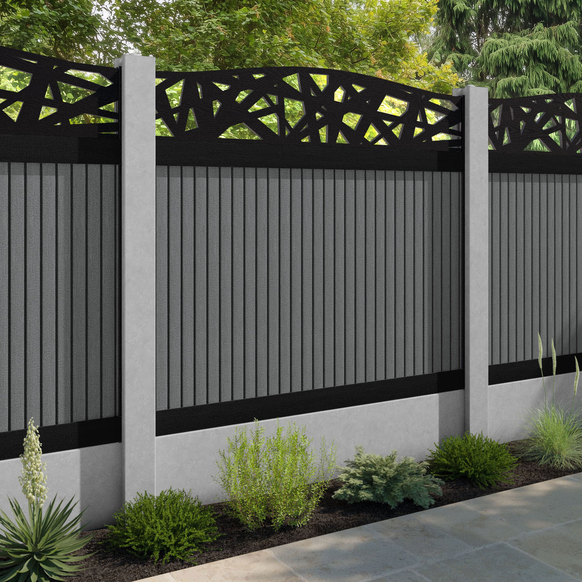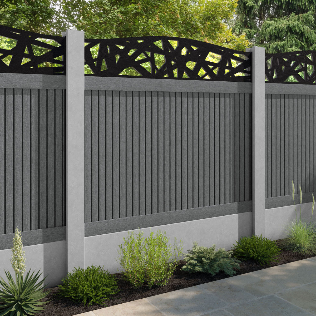 Virtis Prism Curved Top Fence Panel Mid Grey - for existing concrete posts