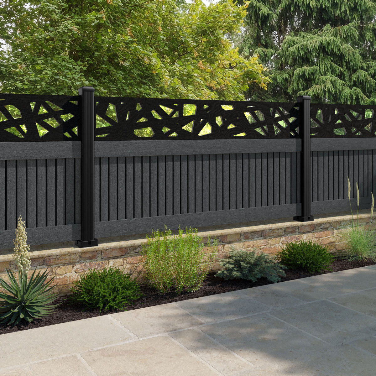 Virtis Prism Fence Panel Dark Grey - with our aluminium posts