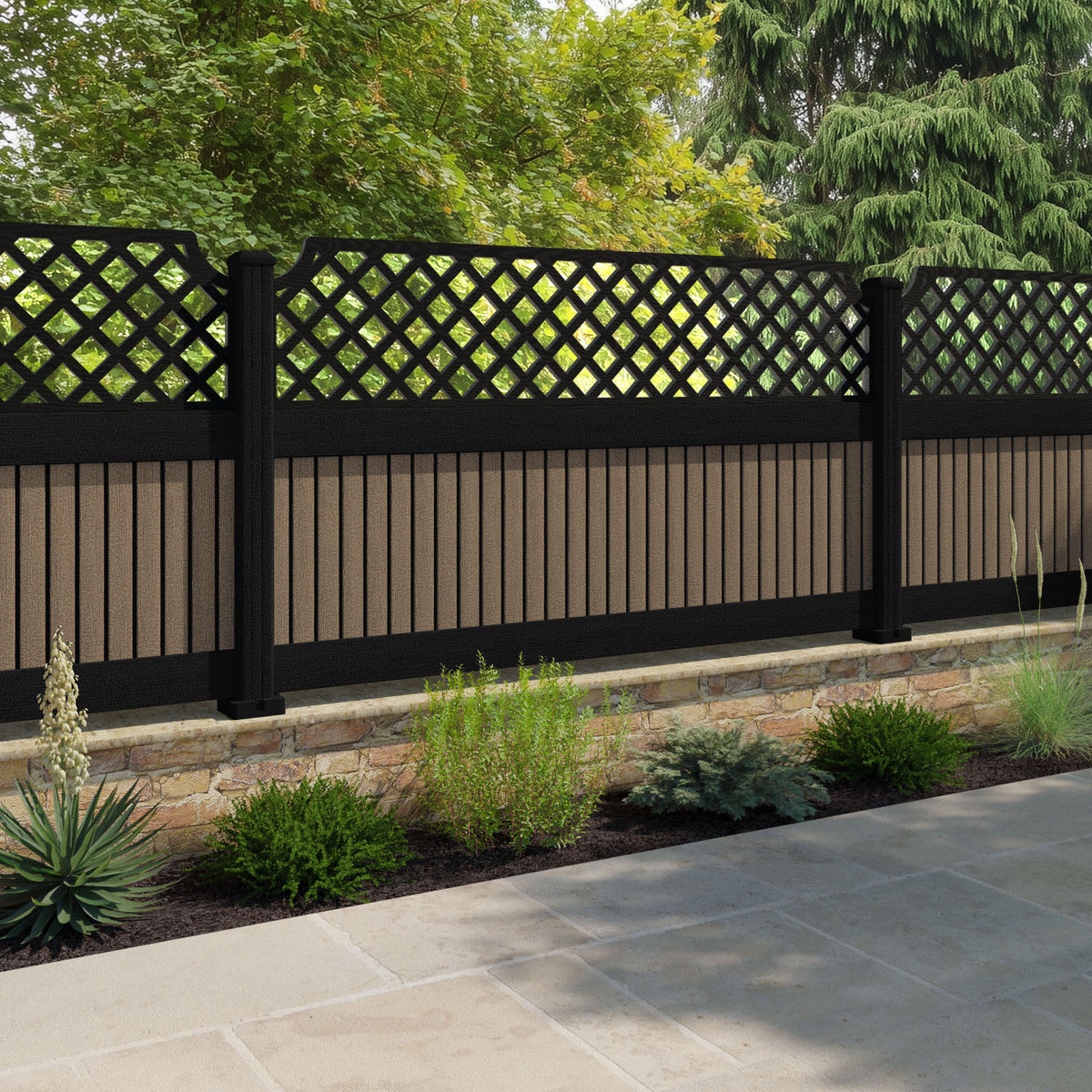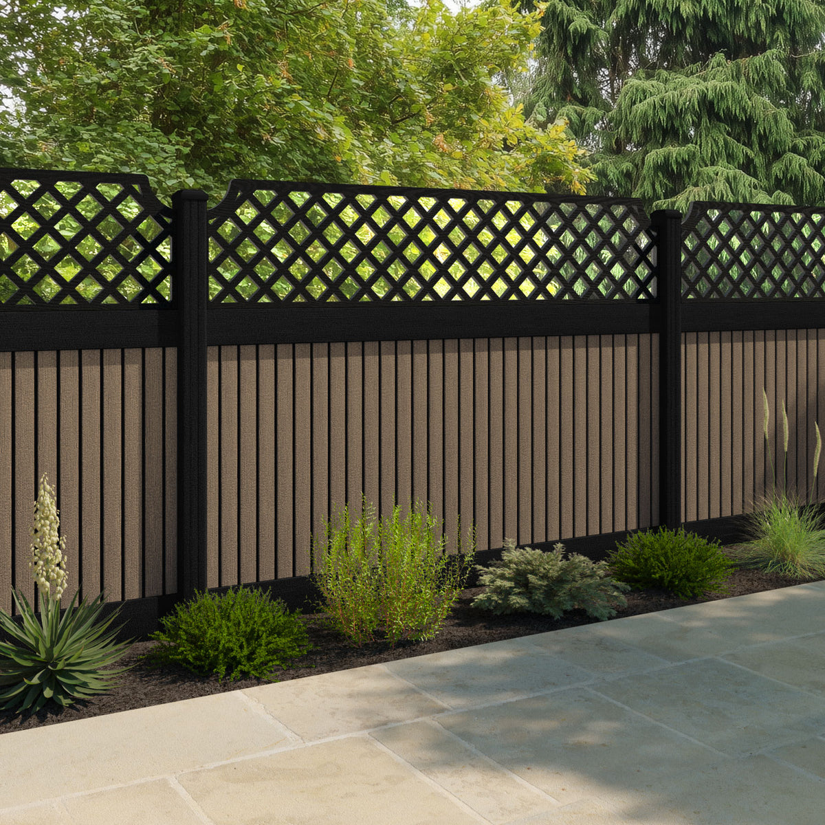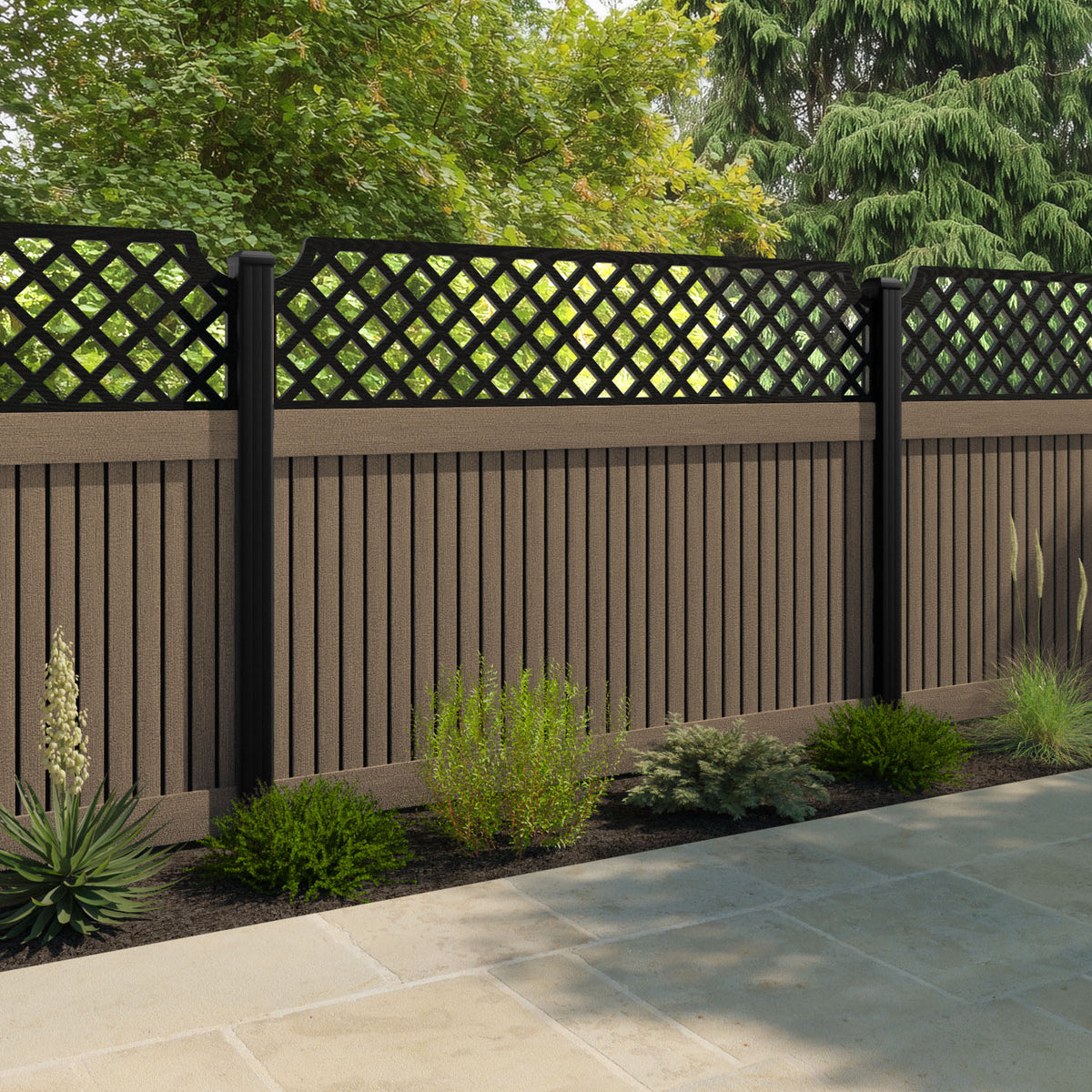Virtis Regal Hive Fence Panel Teak - with our aluminium posts