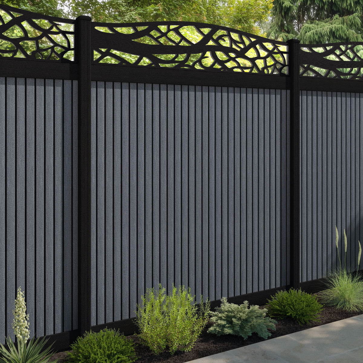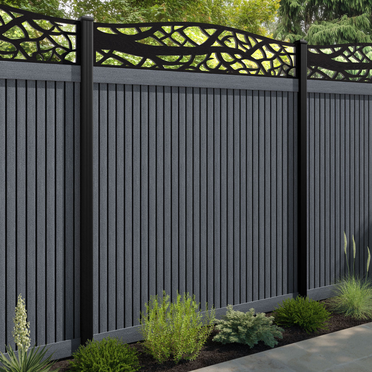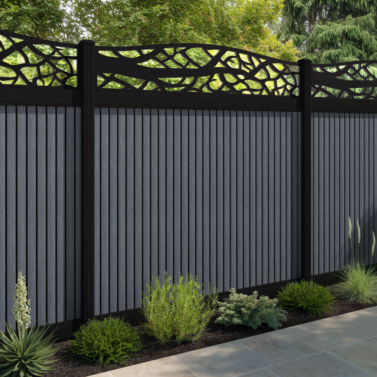 Virtis Twilight Curved Top Fence Panel Anthracite - with our aluminium posts