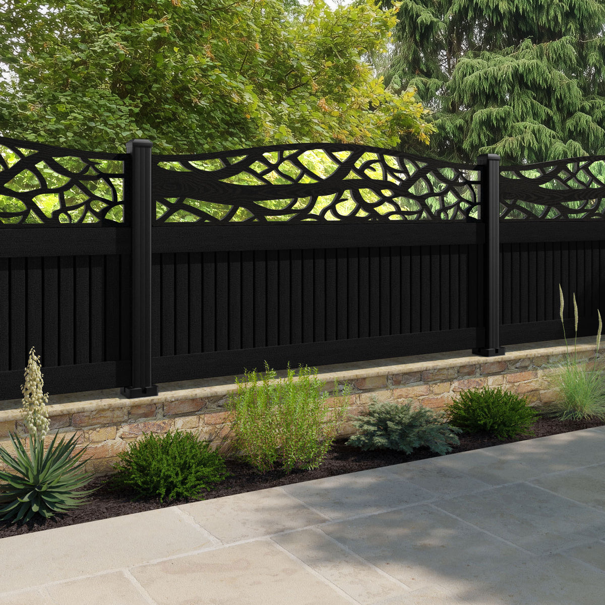 Virtis Twilight Curved Top Fence Panel Black - with our aluminium posts