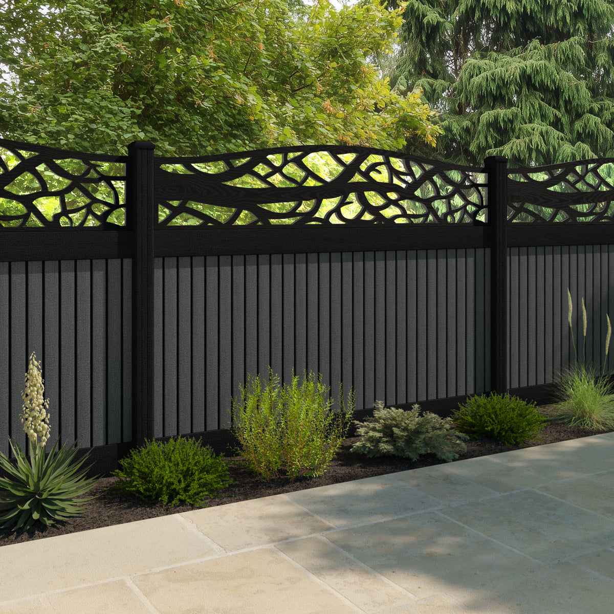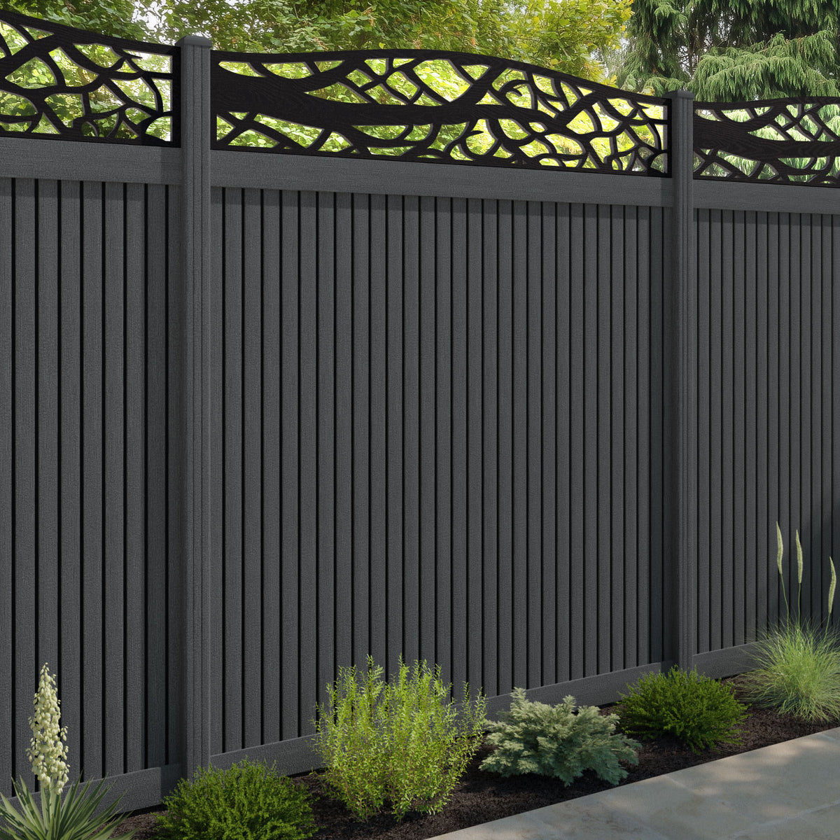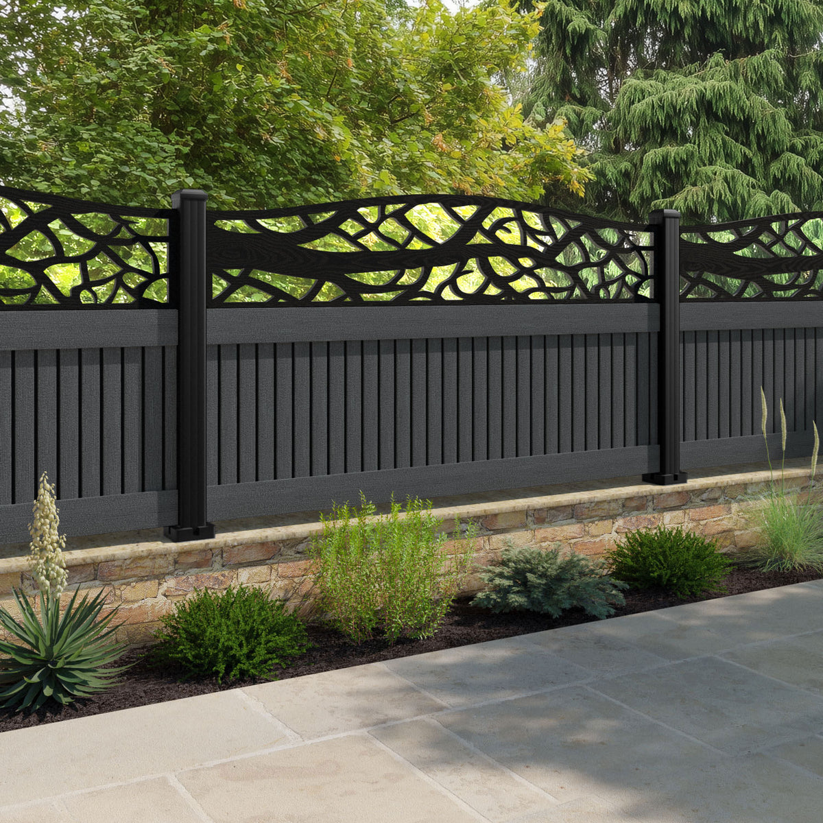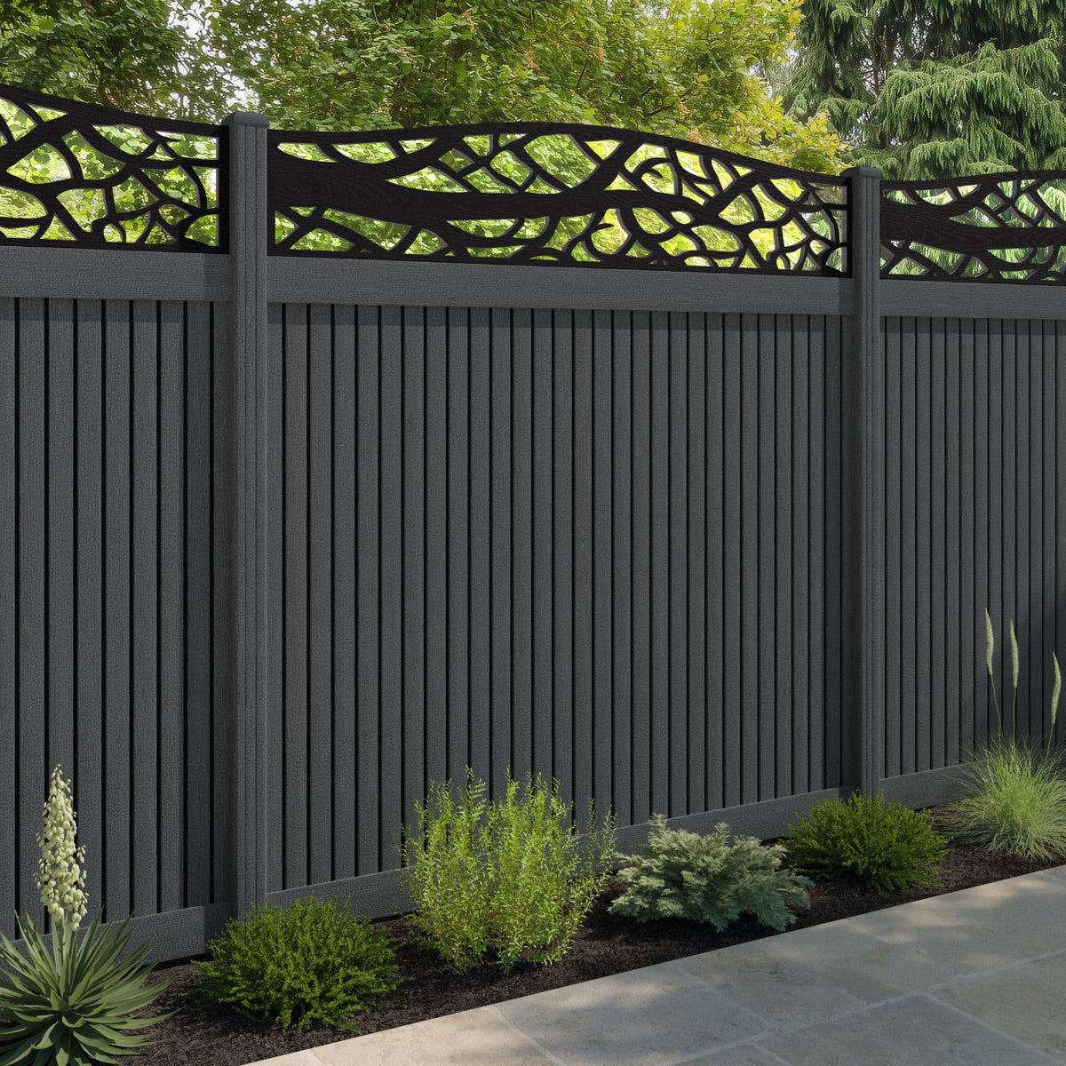 Virtis Twilight Curved Top Fence Panel Dark Grey - with our composite posts