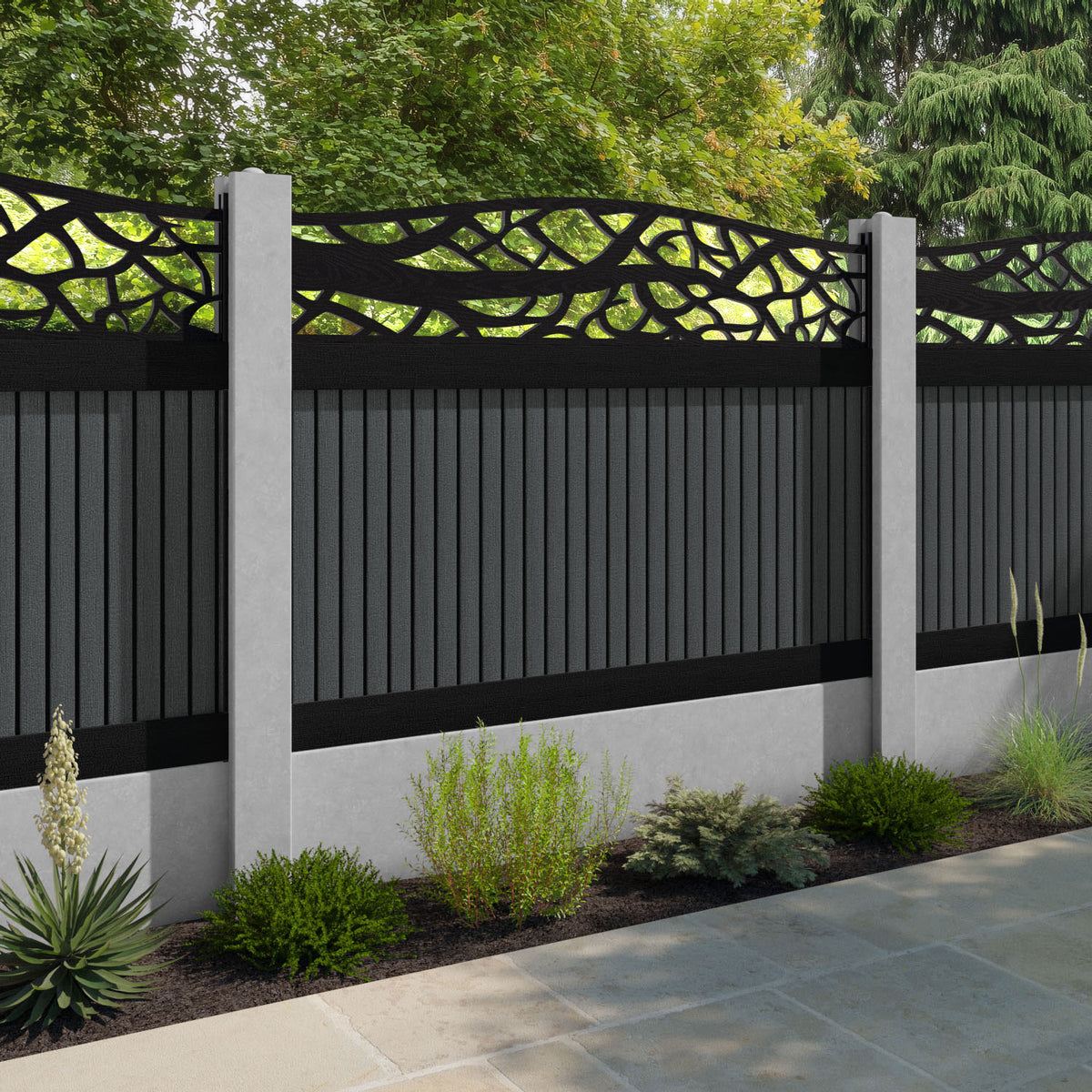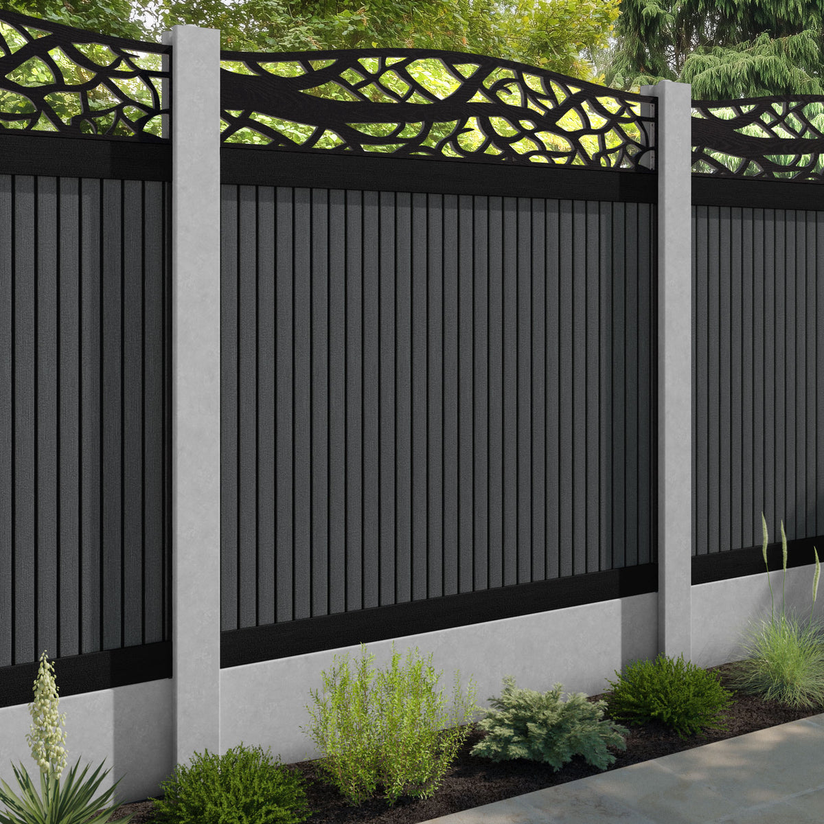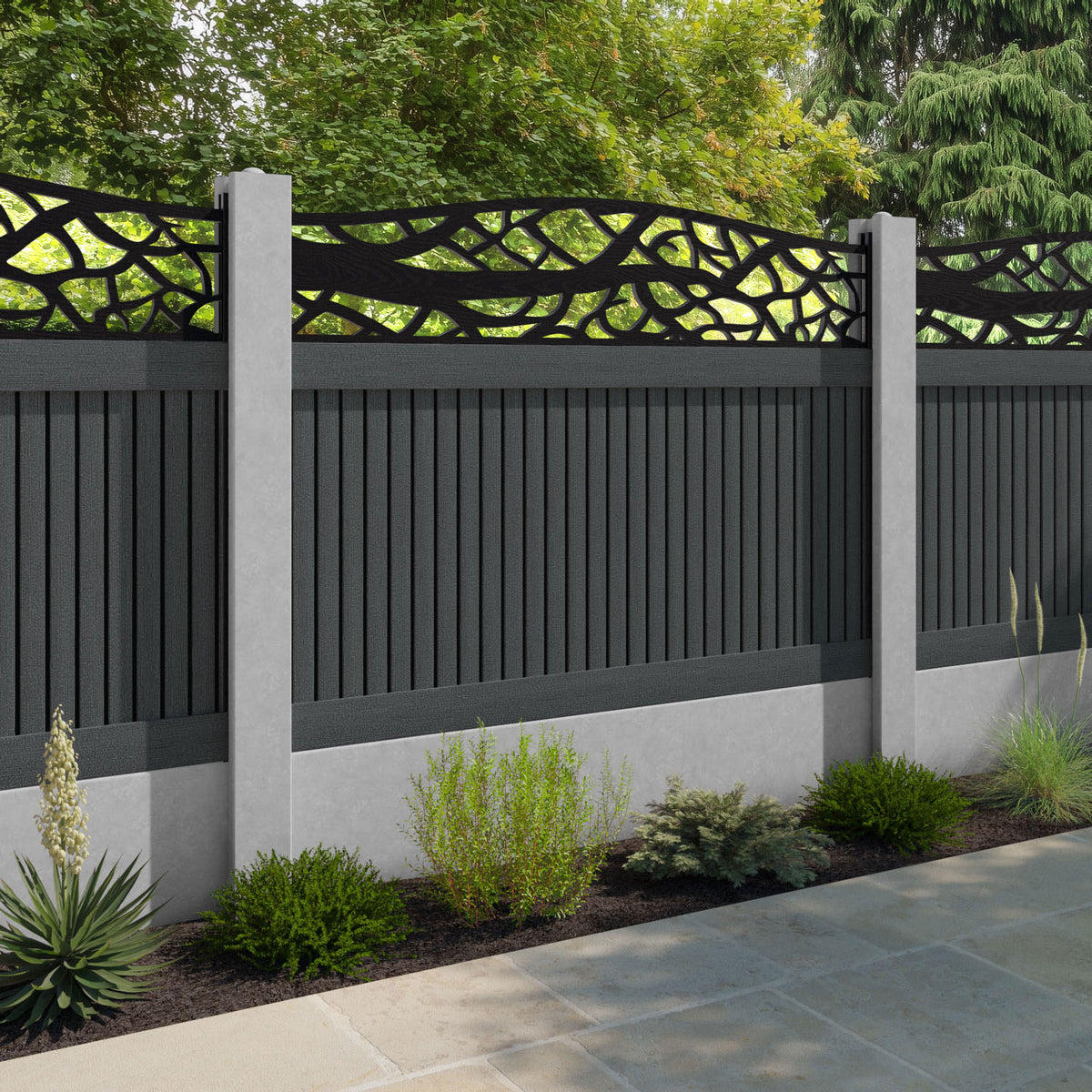 Virtis Twilight Curved Top Fence Panel Dark Grey - for existing concrete posts