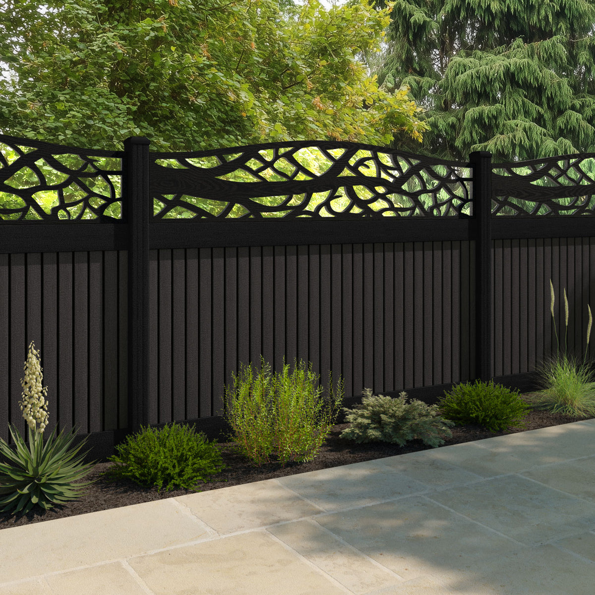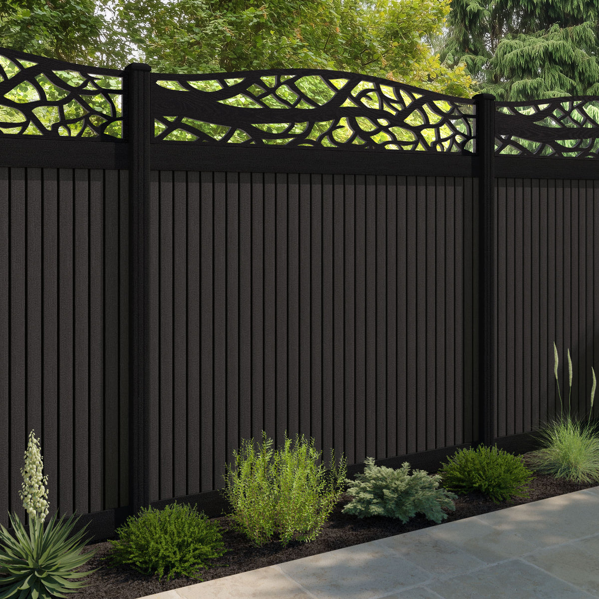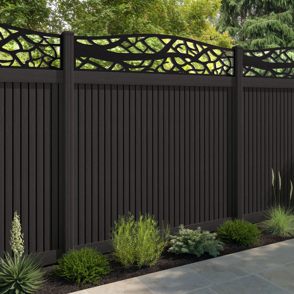 Virtis Twilight Curved Top Fence Panel Dark Oak - with our composite posts