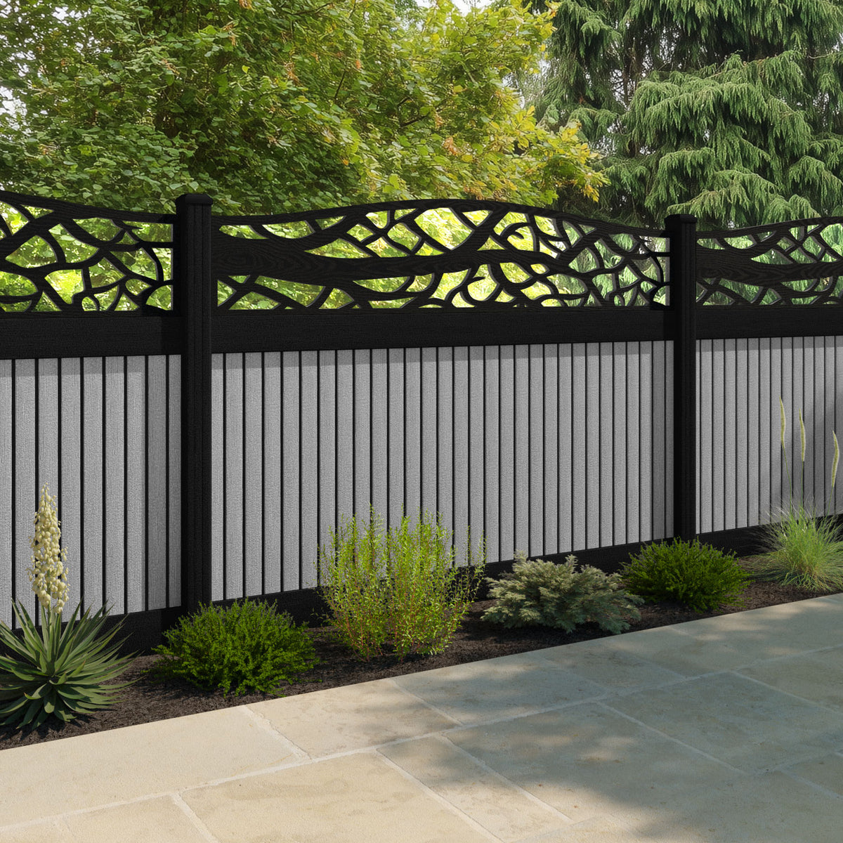 Virtis Twilight Curved Top Fence Panel Light Grey - with our aluminium posts