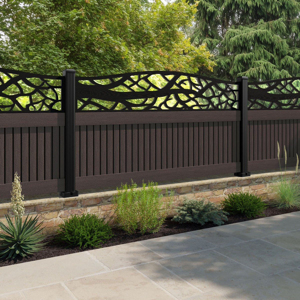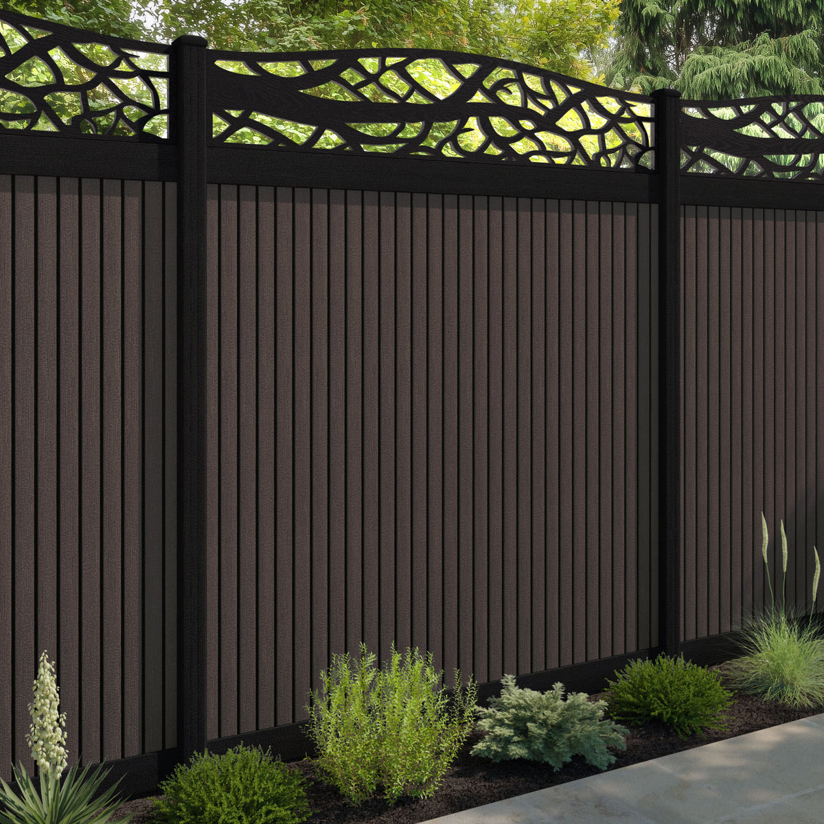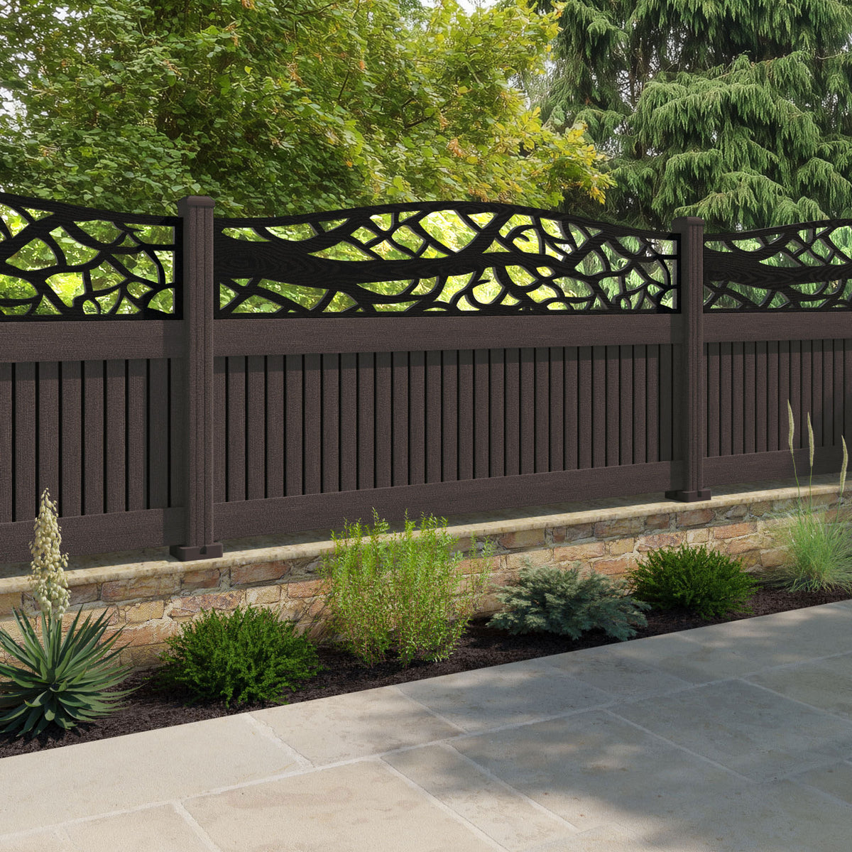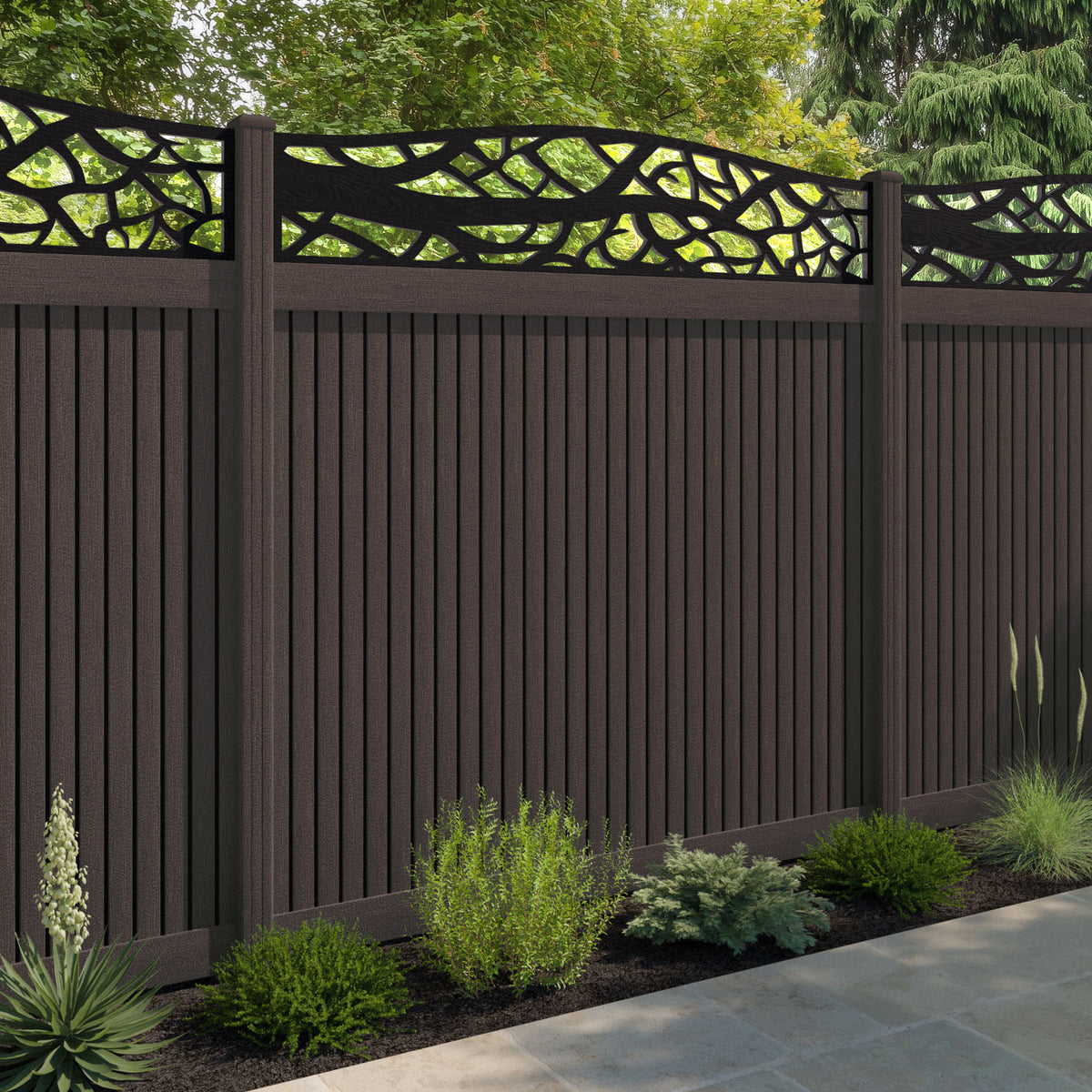 Virtis Twilight Curved Top Fence Panel Mid Brown - with our composite posts