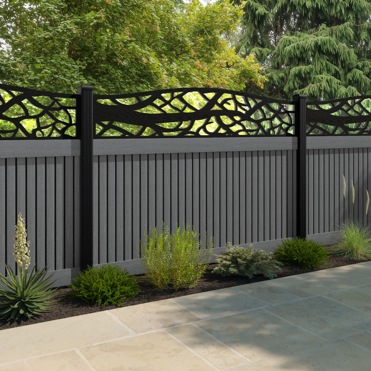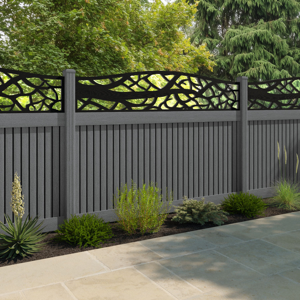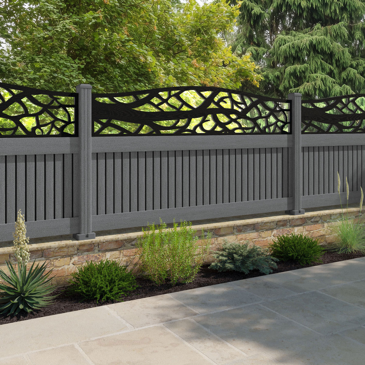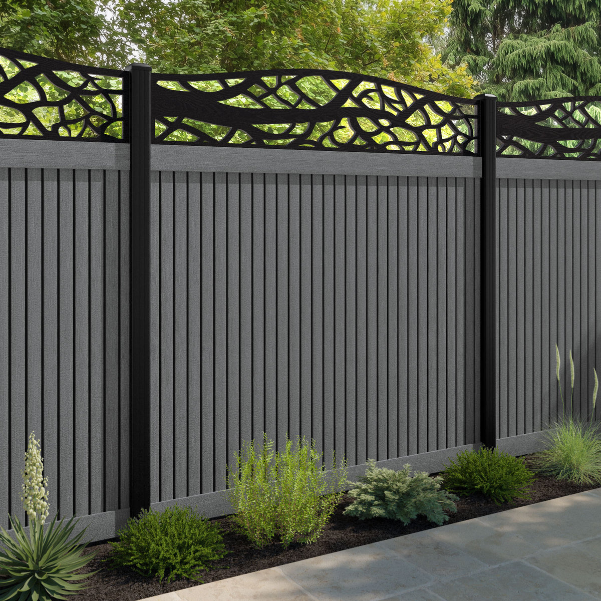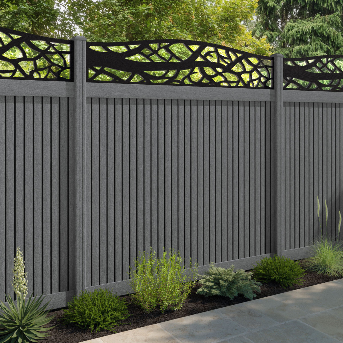 Virtis Twilight Curved Top Fence Panel Mid Grey - with our composite posts