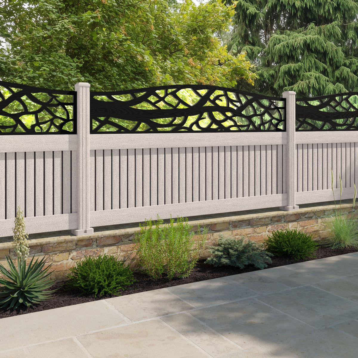 Virtis Twilight Curved Top Fence Panel Mid Stone - with our composite posts