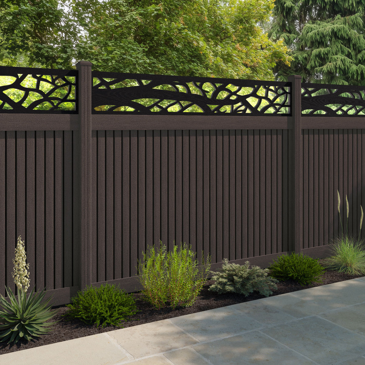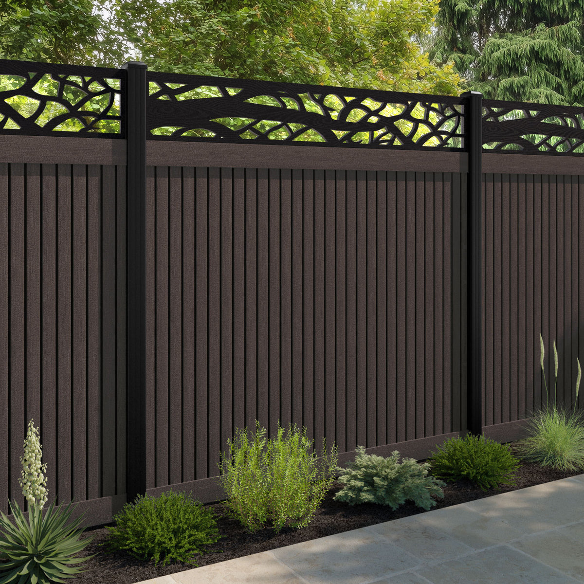 Virtis Twilight Fence Panel Mid Brown - with our composite posts