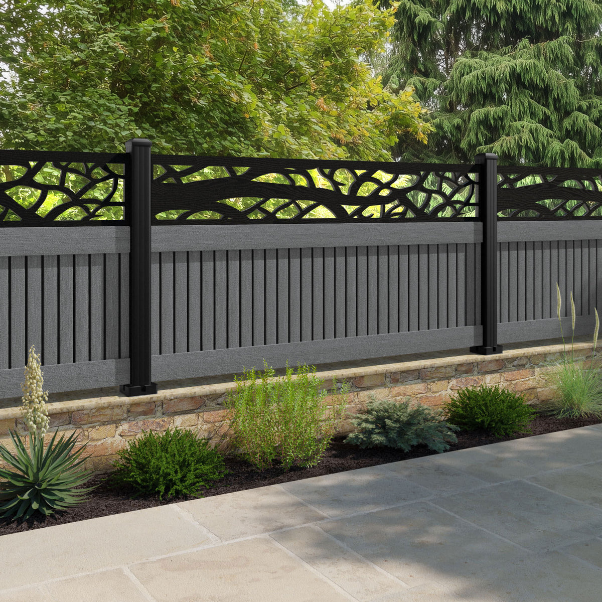 Virtis Twilight Fence Panel Mid Grey - with our aluminium posts