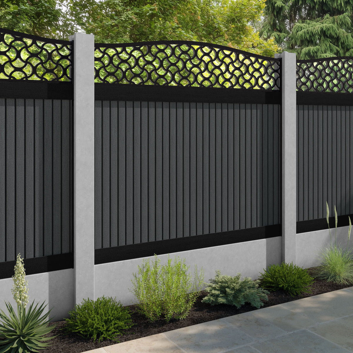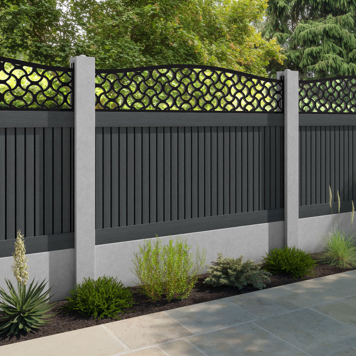 Virtis Vida Curved Top Fence Panel Dark Grey - for existing concrete posts