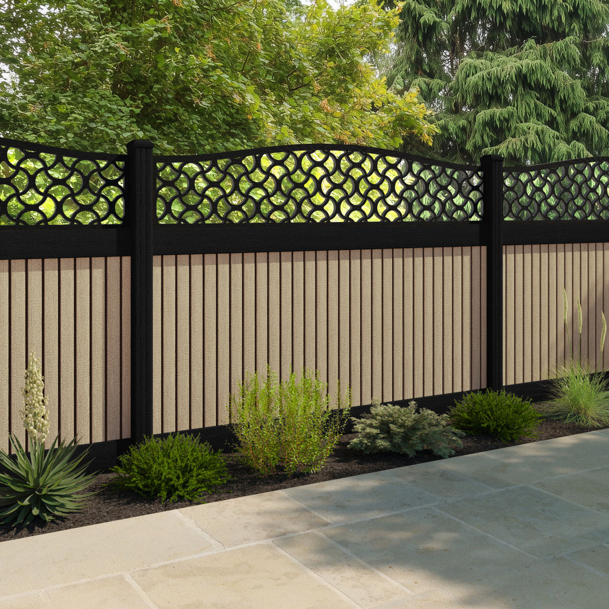 Virtis Vida Curved Top Fence Panel Light Oak - with our aluminium posts