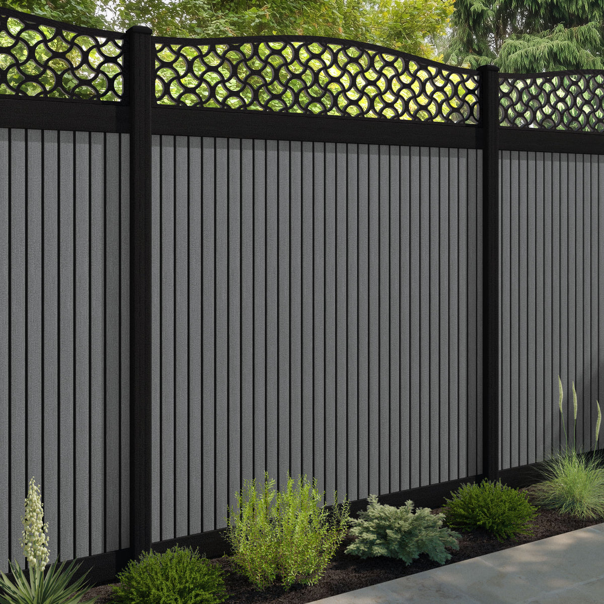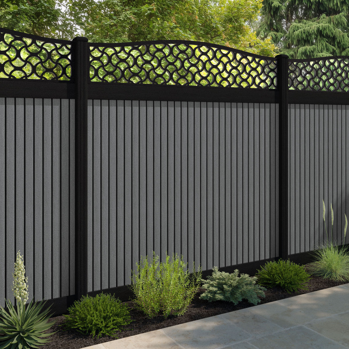 Virtis Vida Curved Top Fence Panel Mid Grey - with our aluminium posts