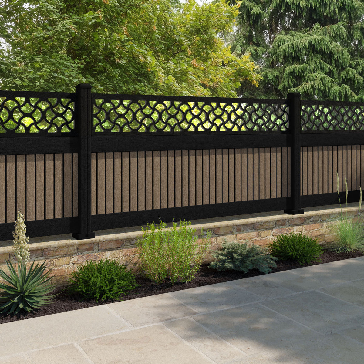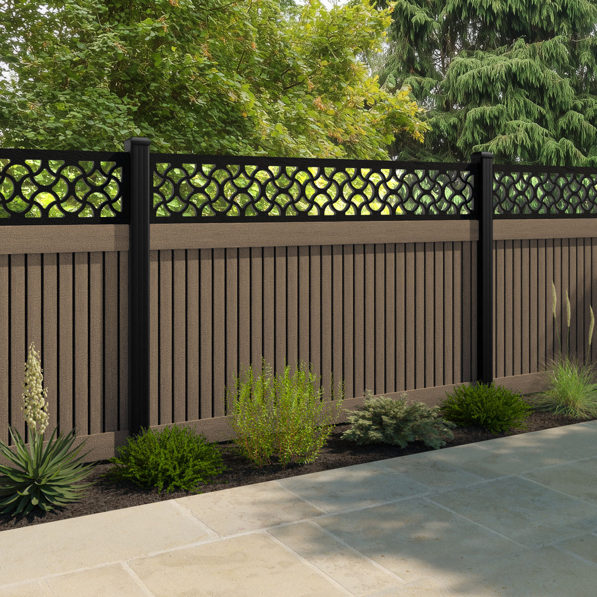 Virtis Vida Fence Panel Teak - with our aluminium posts