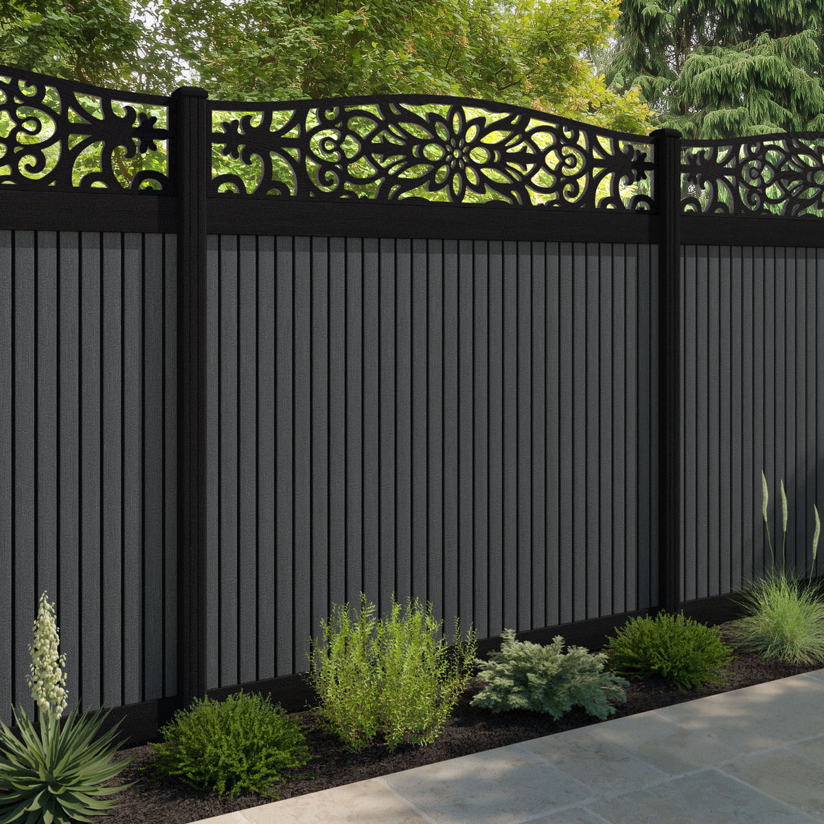Virtis Windsor Curved Top Fence Panel Dark Grey - with our aluminium posts