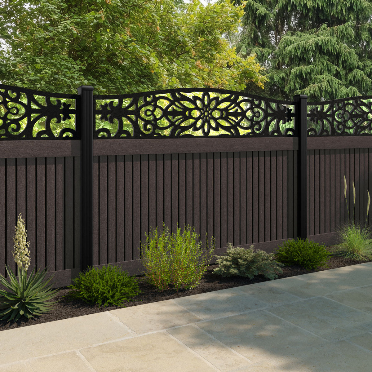 Virtis Windsor Curved Top Fence Panel Mid Brown - with our aluminium posts