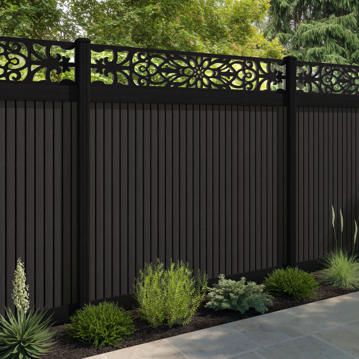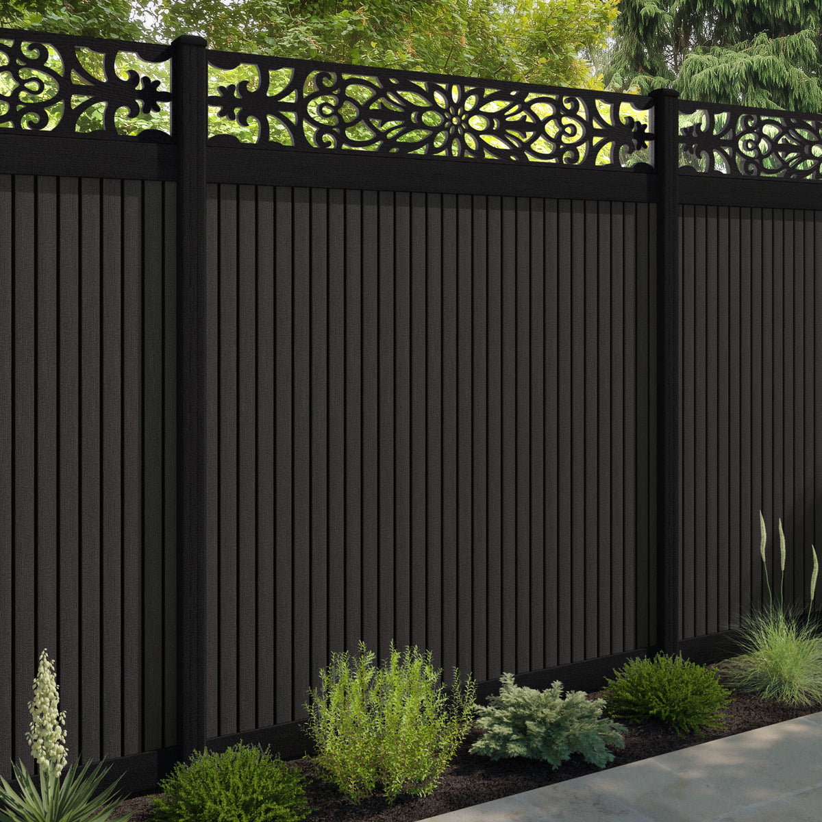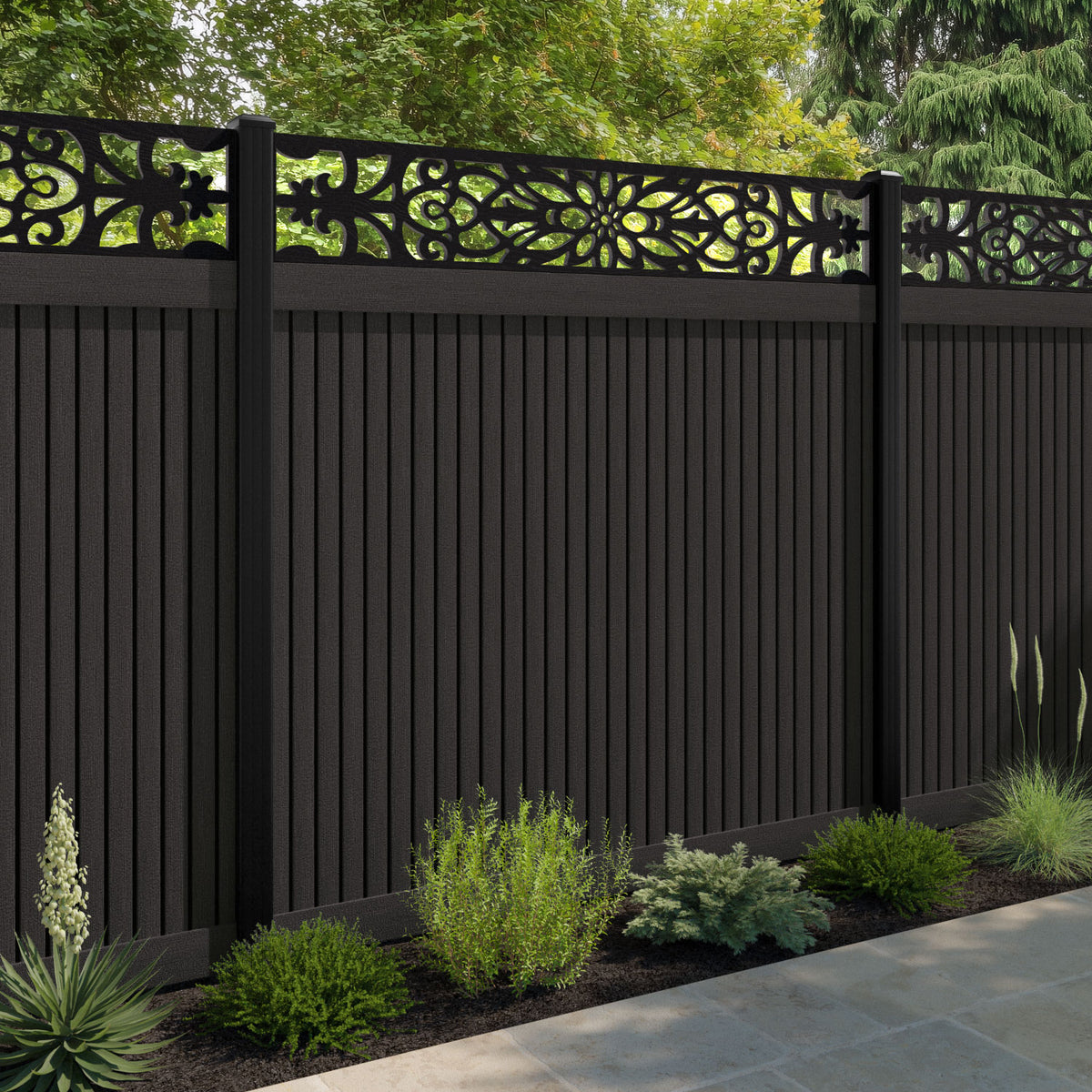 Virtis Windsor Fence Panel Dark Oak - with our aluminium posts
